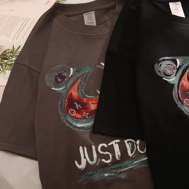 卡通新款夏季字母圆领印花T恤休闲宽松版短袖男女半袖潮DT476