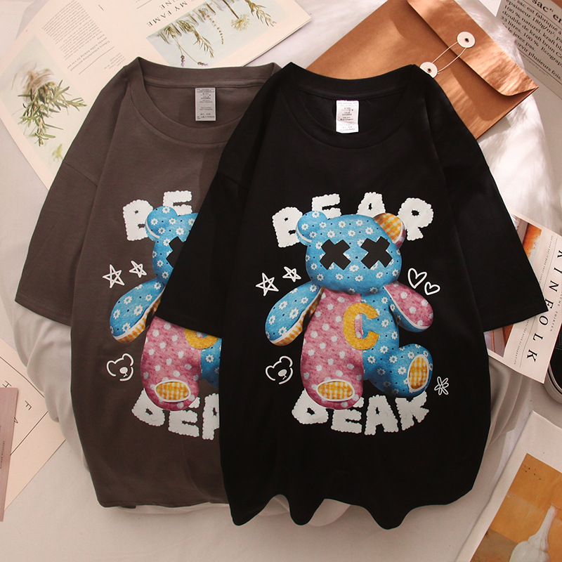 夏季新款字母印花圆领休闲情侣装短袖男女宽松大码半袖DT584