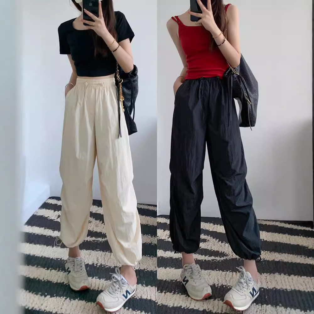 夏季冰丝束脚运动长裤女款轻薄透气防晒降落伞裤小个子休闲工装裤