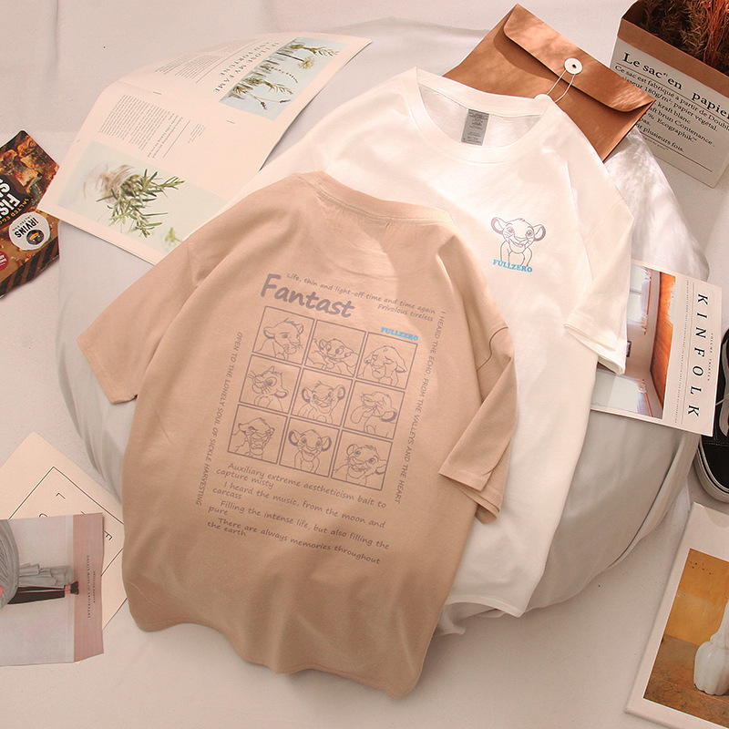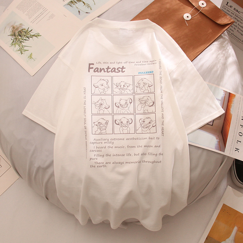 夏季新款卡通印花街头休闲情侣圆领宽松短袖T恤男女潮DT114