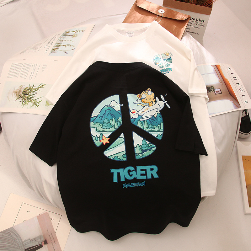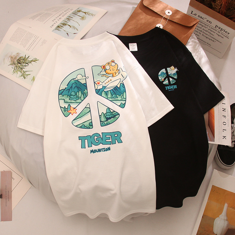 夏季新款街头休闲卡通印花情侣圆领宽松短袖T恤男女半袖DT182