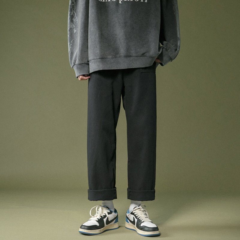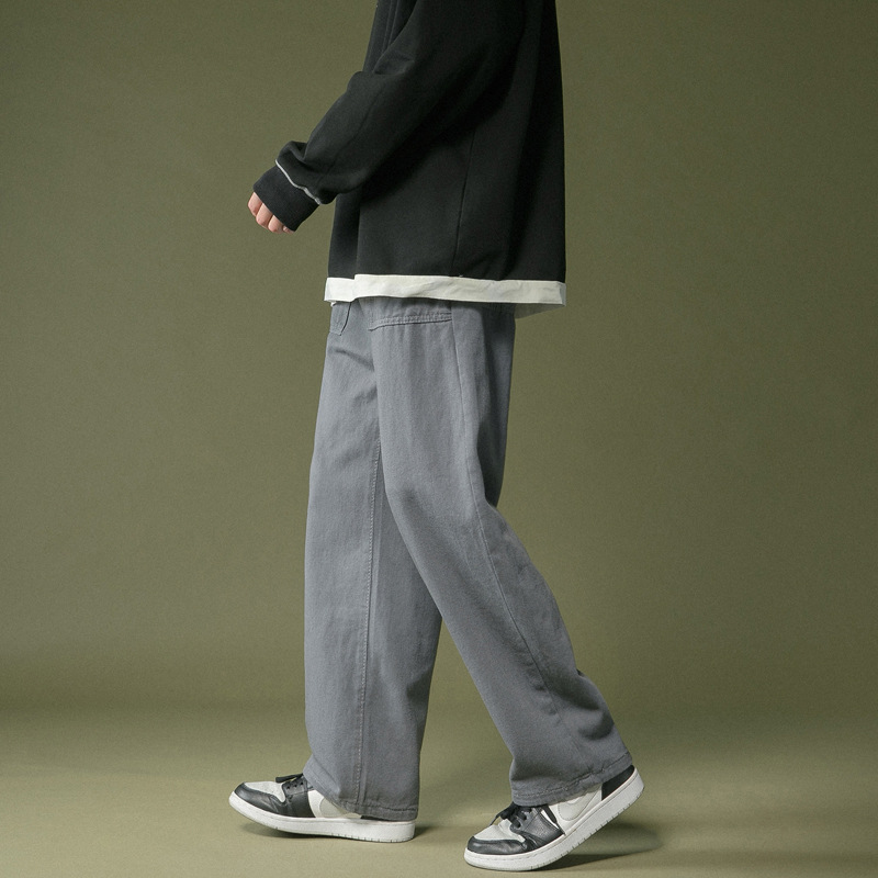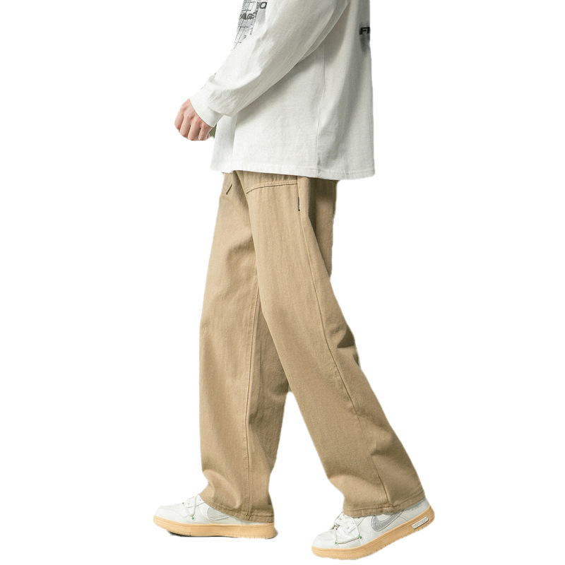 港风潮流卡其色裤子男夏季直筒工装裤青少年宽松百搭休闲拖地长裤