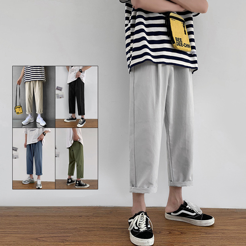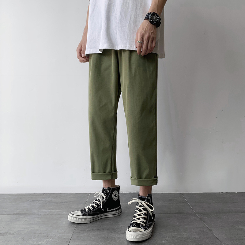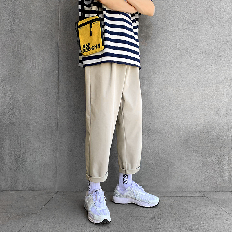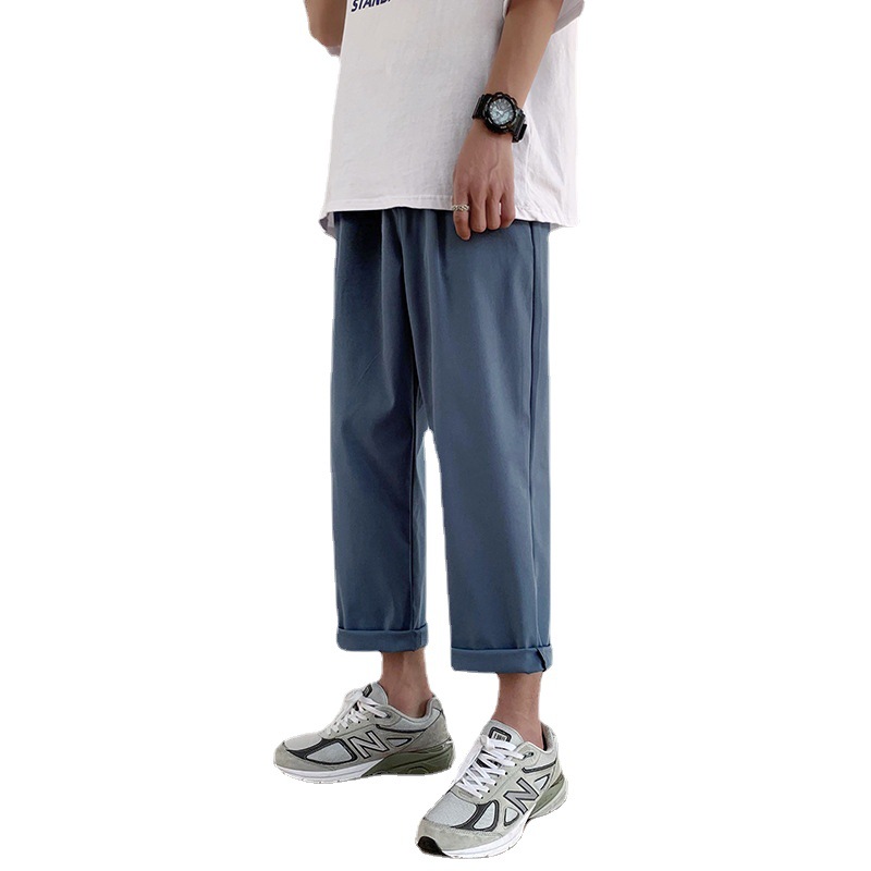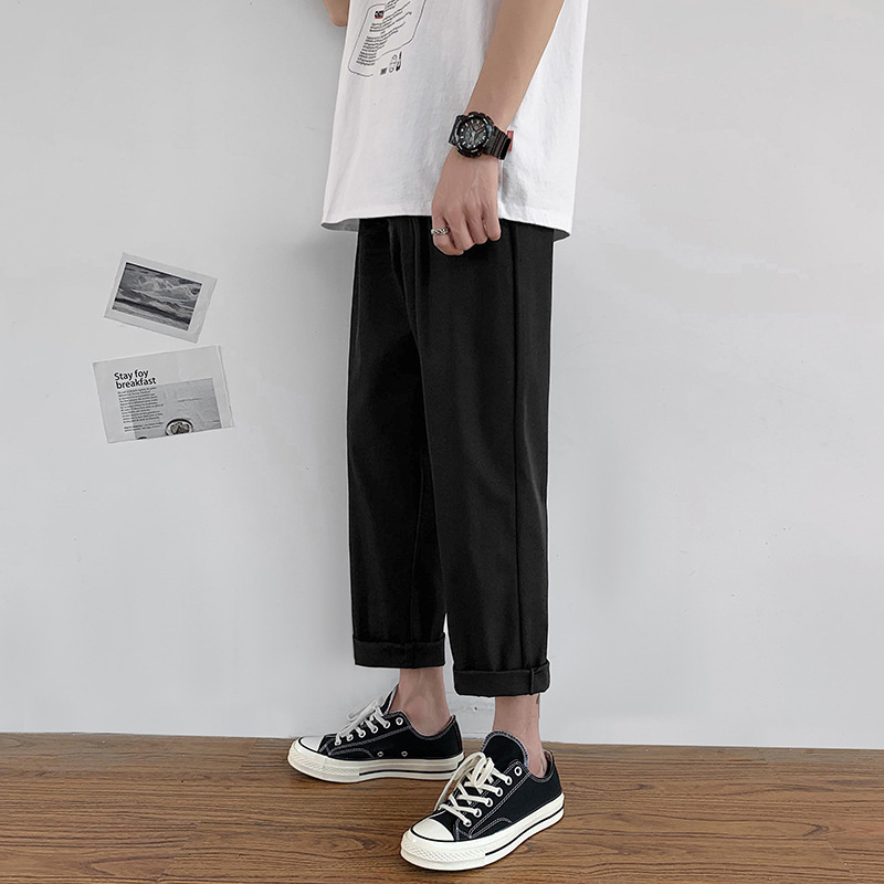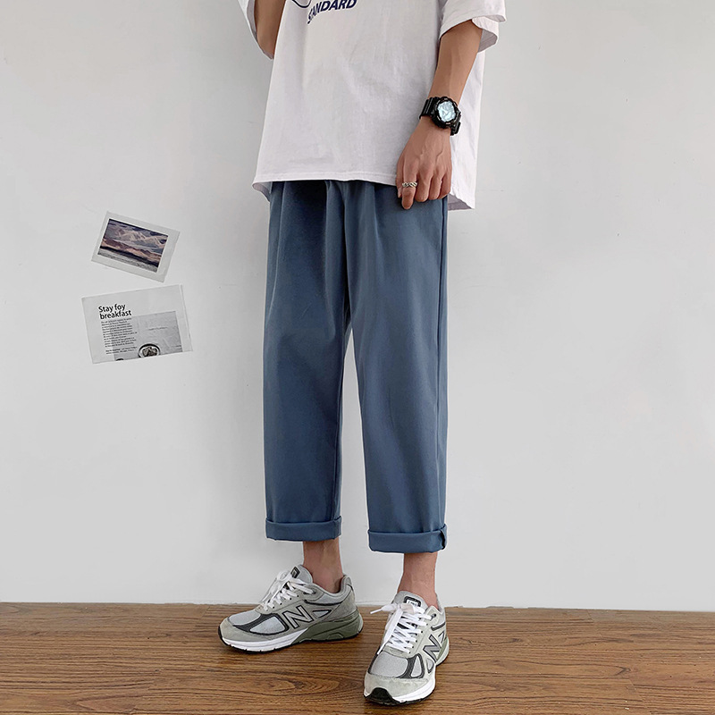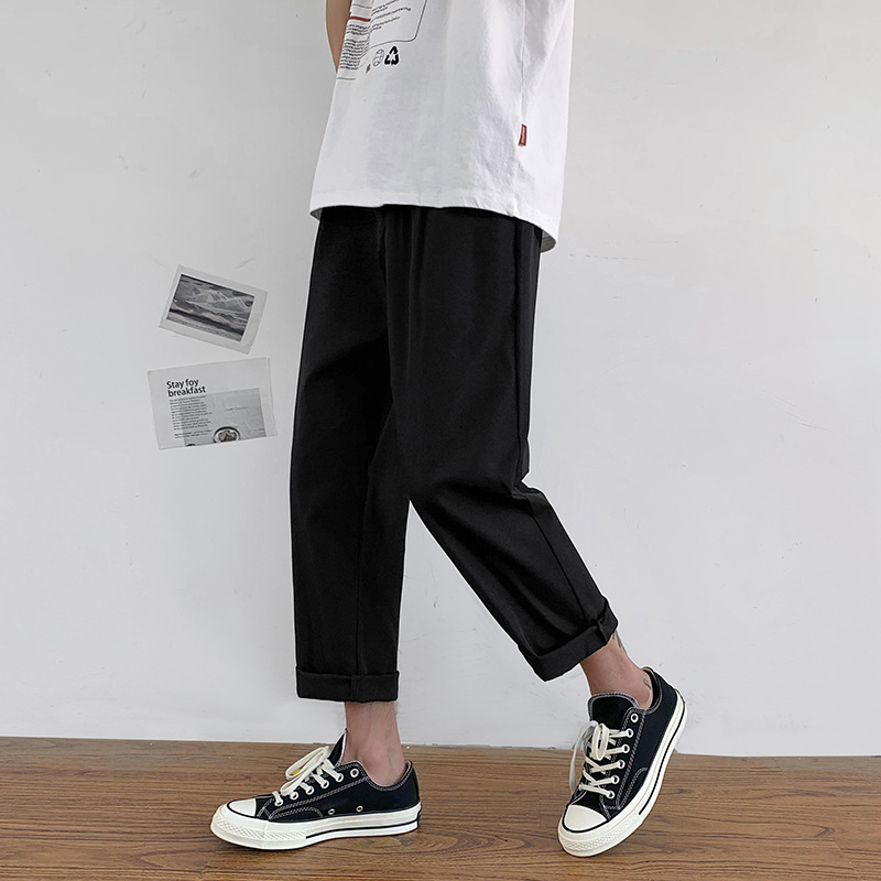 直筒薄款九分休闲裤子男港风纯色简约大码男装胖子哈伦裤夏季新款
