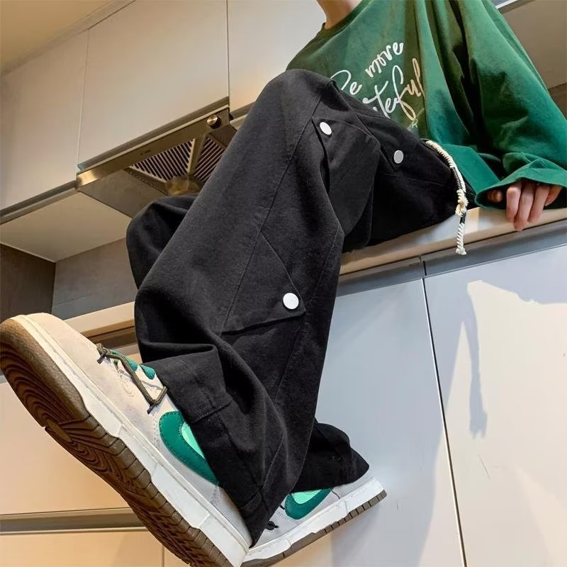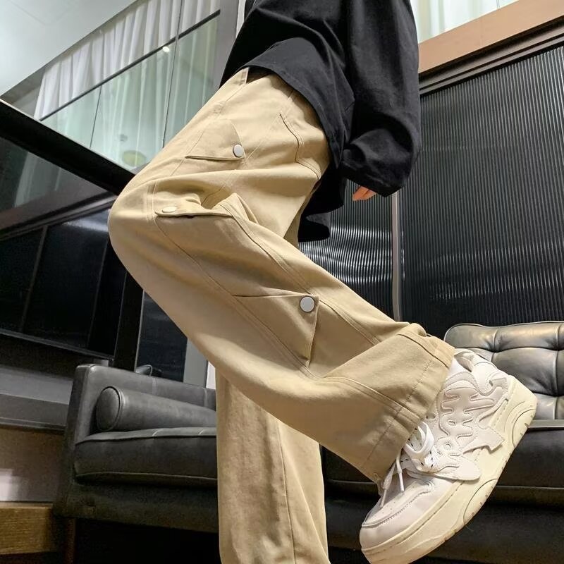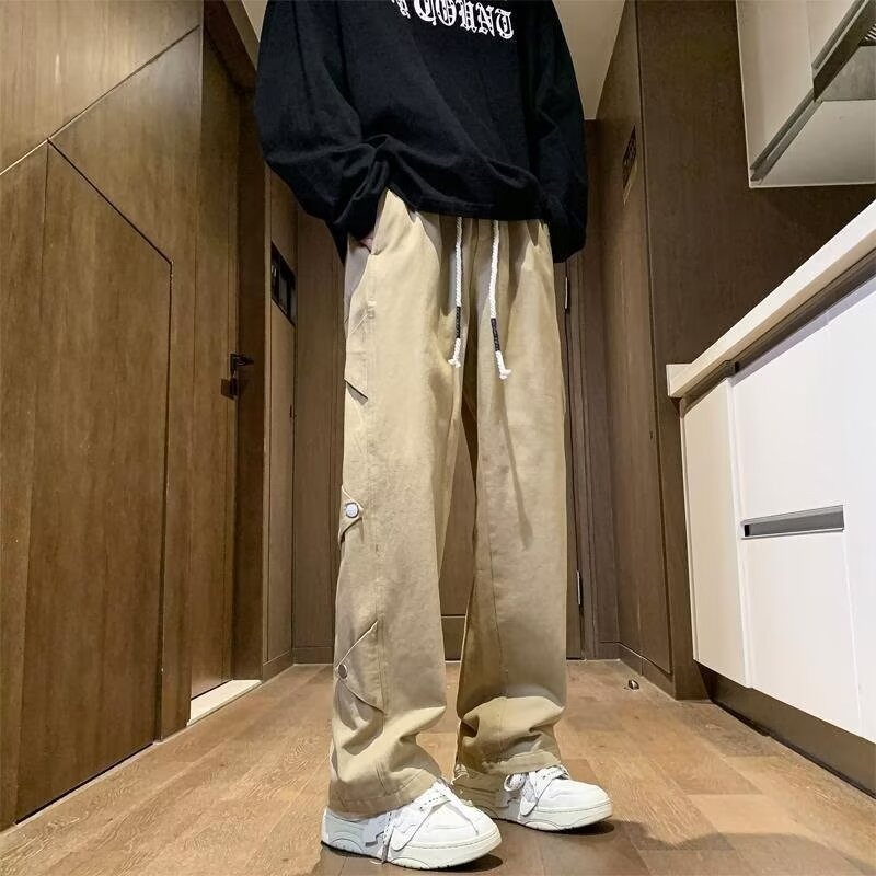 卡其色休闲裤子男款秋季直筒阔腿裤子潮流痞帅高街美式长裤男