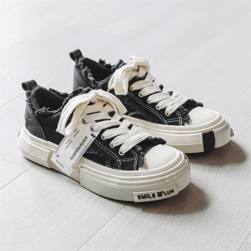 帆布鞋男夏季厚底防滑圆头透气小众设计板鞋学生百搭休闲运动潮鞋