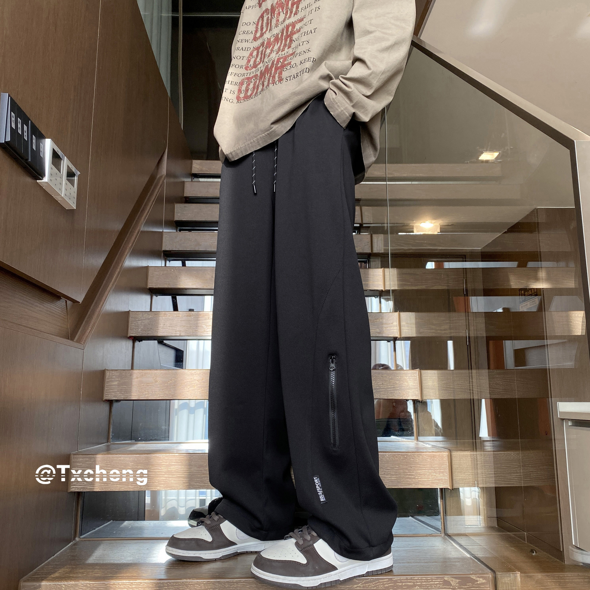 裤子男款春季新款宽松阔腿裤男士直筒休闲长裤美式复古运动裤