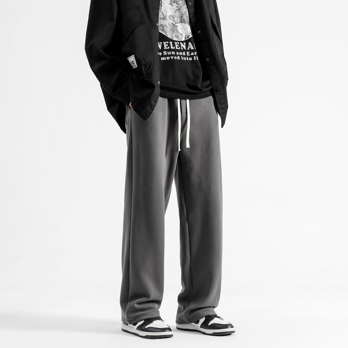 爆款卫裤新款秋季直筒裤男装港风情侣宽松拖地长裤空板纯色潮