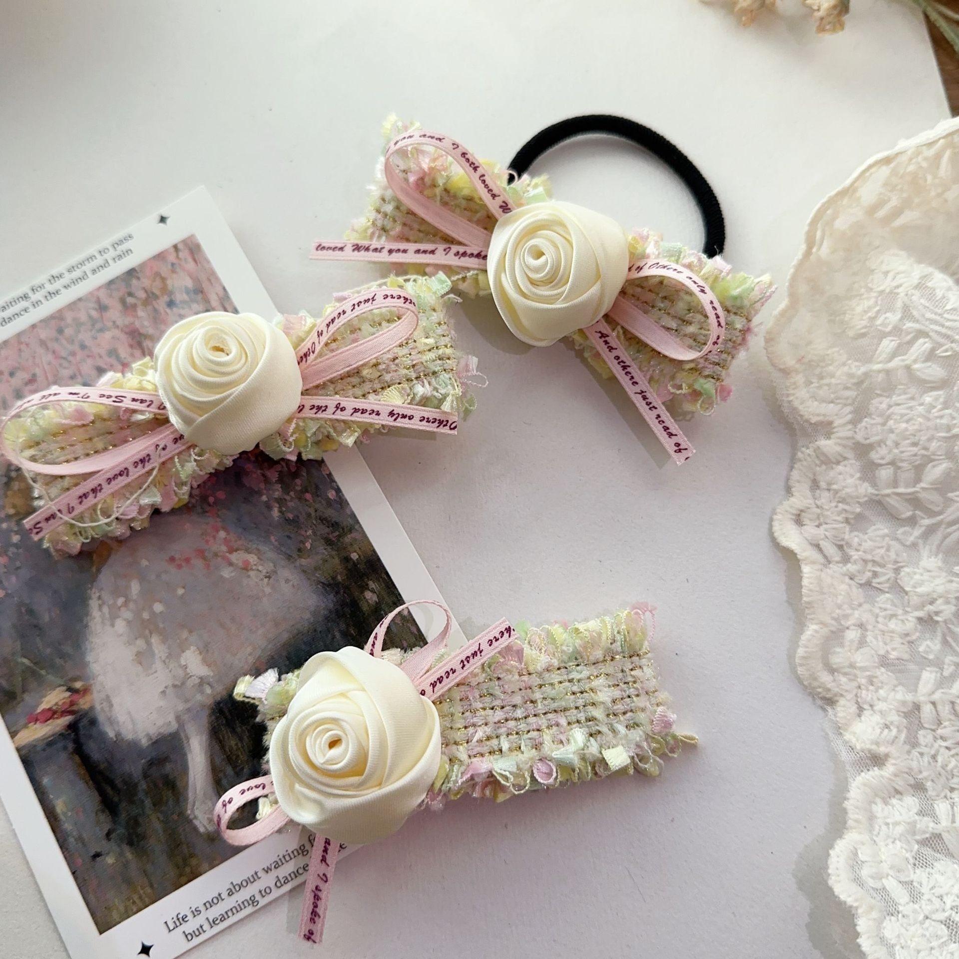 可爱儿童发饰丝滑奶油玫瑰手工蝴蝶结发圈边夹辫子鸭嘴夹拜拜夹