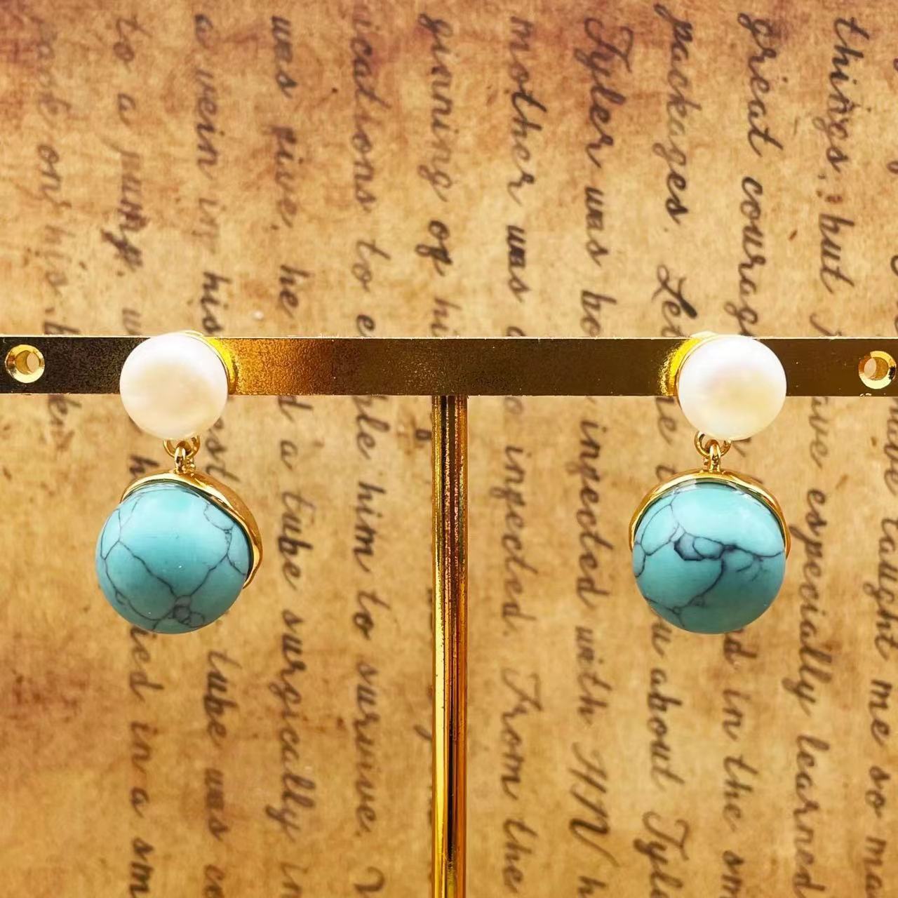 银针馒头绿色珍珠耳环复古小众设计感高级新款爆款耳环耳饰