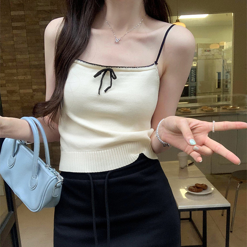 多巴胺泰式独特精致蝴蝶结装饰小吊带女夏季新款外穿内搭打底上衣
