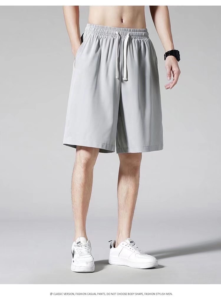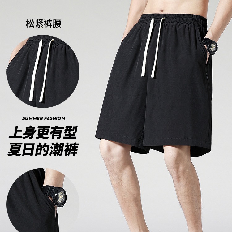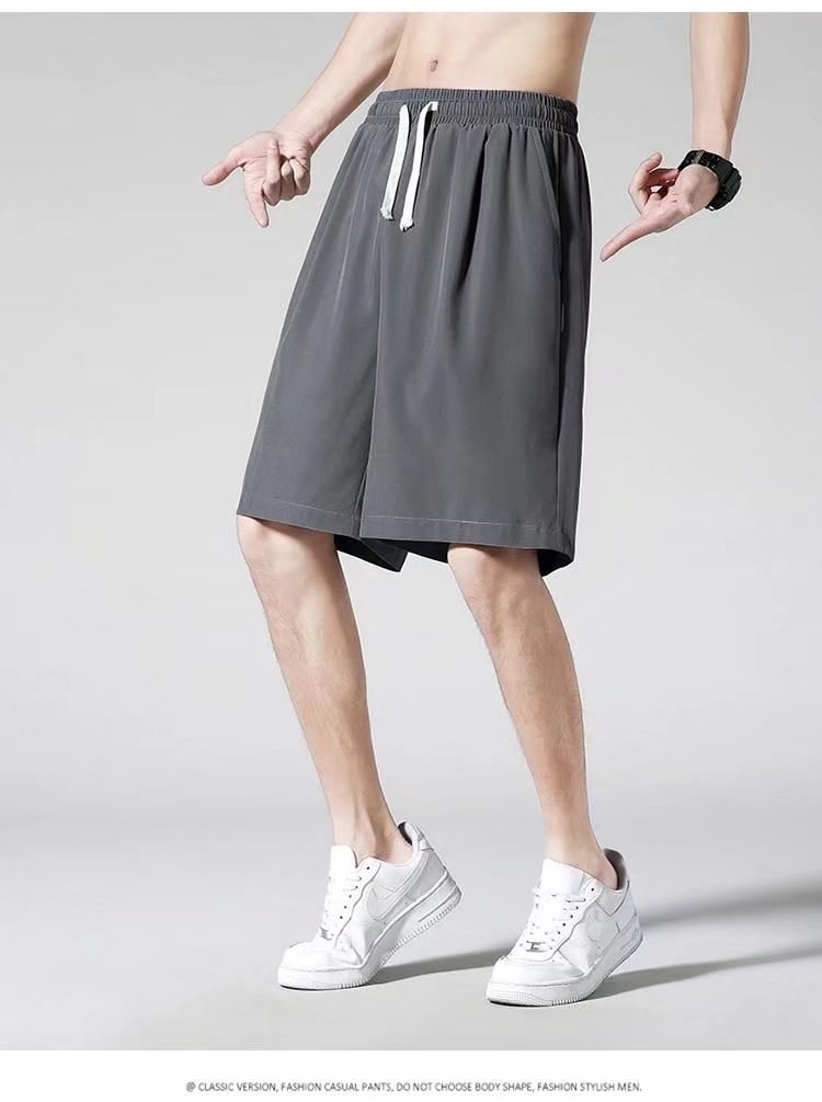 运动休闲短裤薄款简约宽松大码外穿大裤衩短裤冰丝五分裤