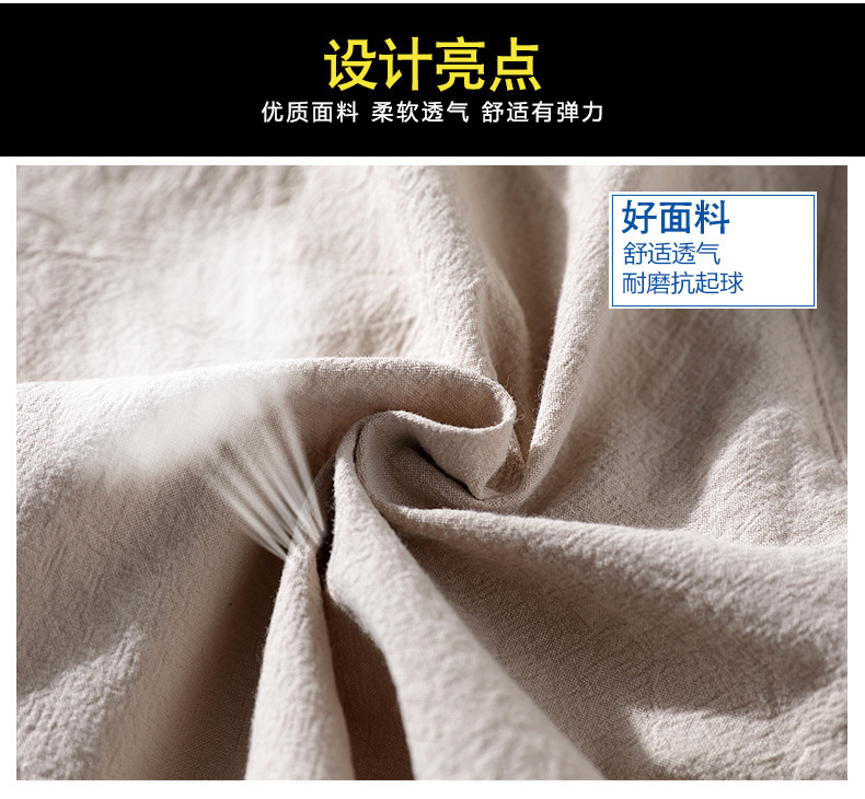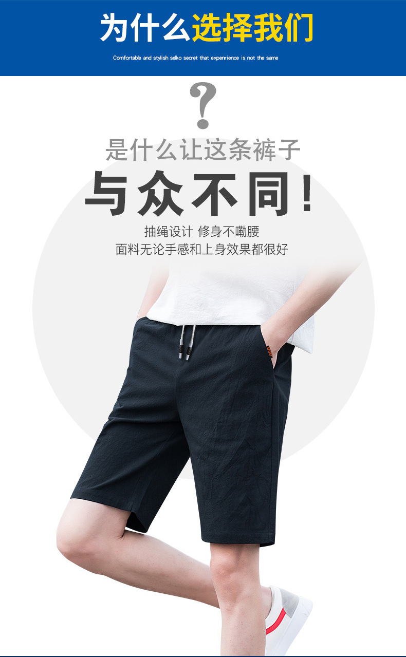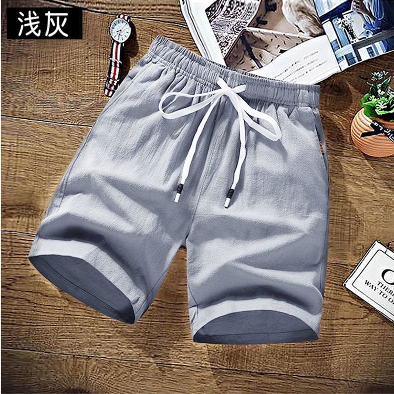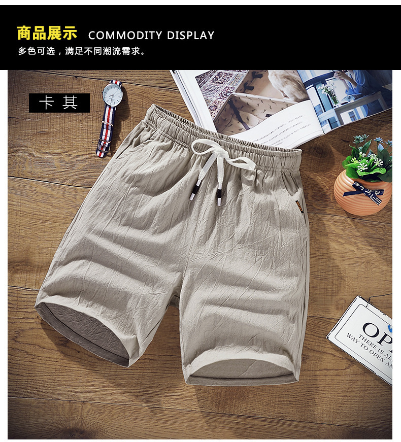 夏季新款男士休闲亚麻短裤松紧腰透气薄款棉麻宽松五分沙滩中裤男