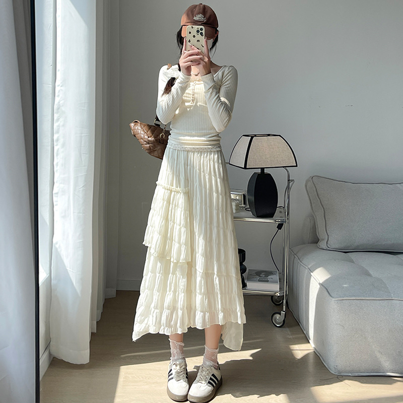 夏季新款白色半身裙女高腰显瘦a字伞裙中长款不规则蛋糕裙