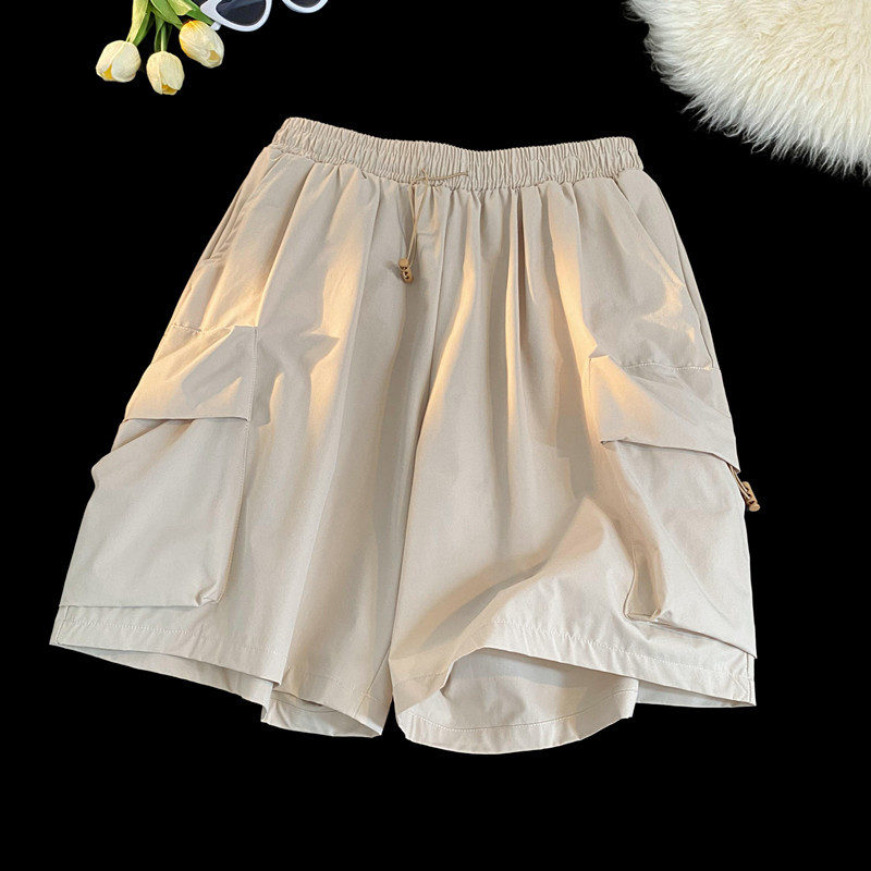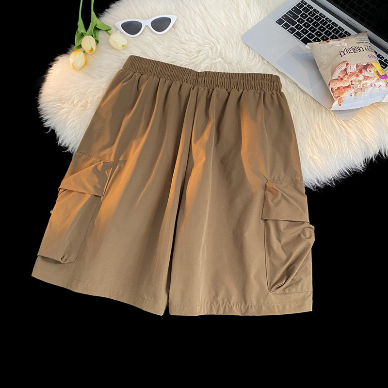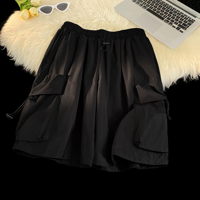 日系机能工装短裤男高街复古潮流宽松大码抽绳口袋运动五分裤男生