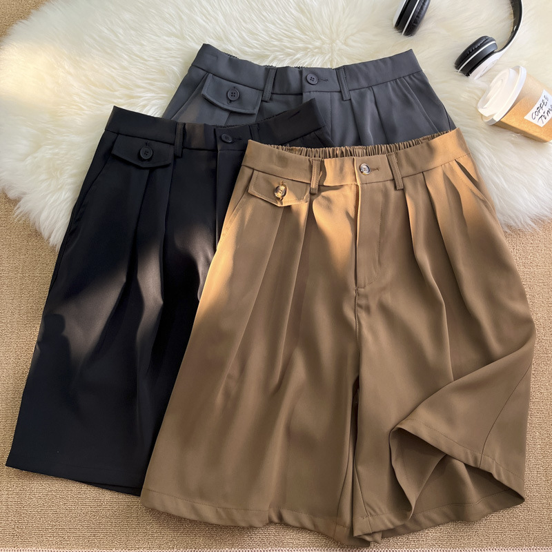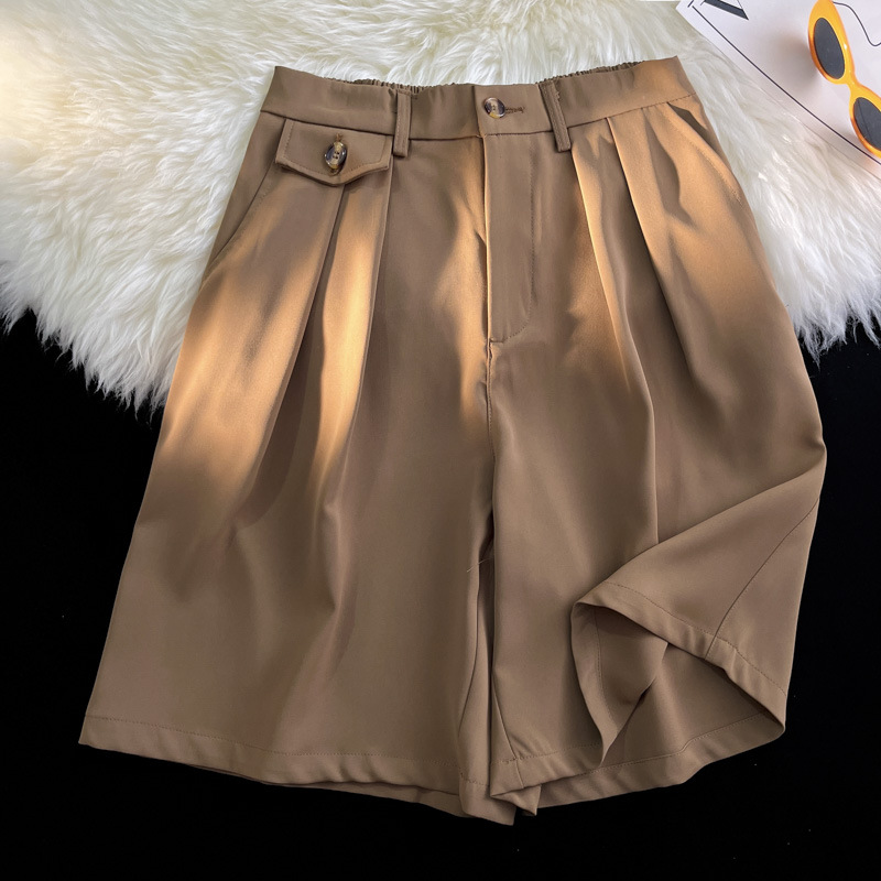 潮牌纯色阔腿休闲西装短裤男夏季原宿风ins百搭宽松坠感五分裤子