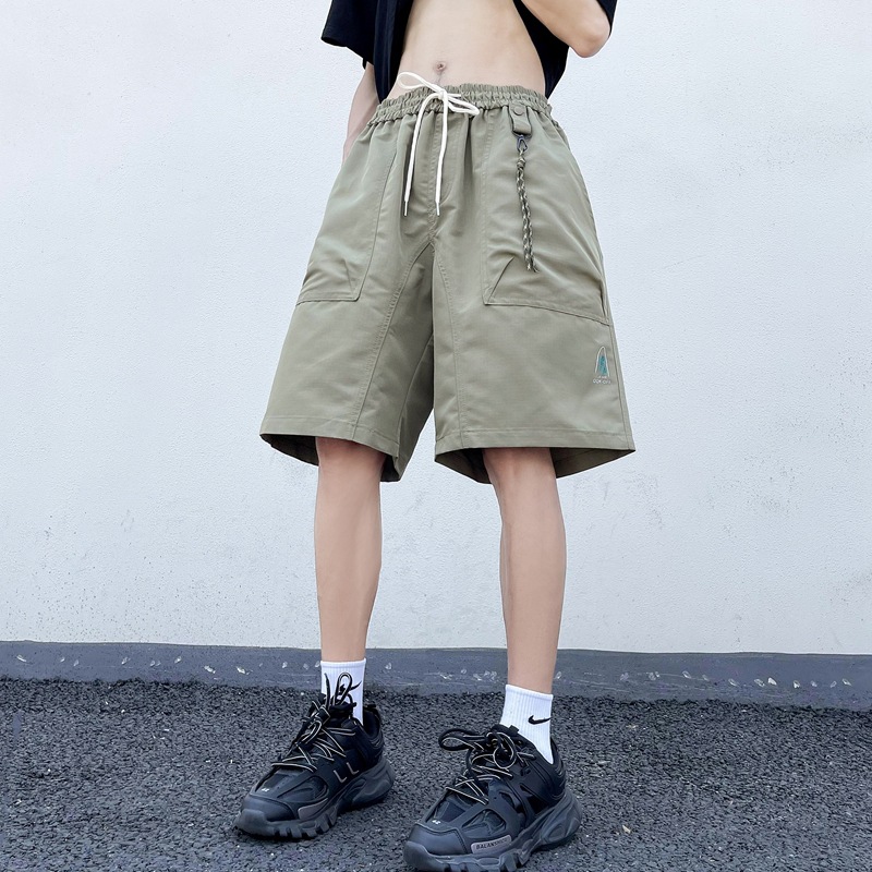 夏季工装短裤男原宿风ins潮牌运动宽松百搭帅气抽绳直筒五分裤子