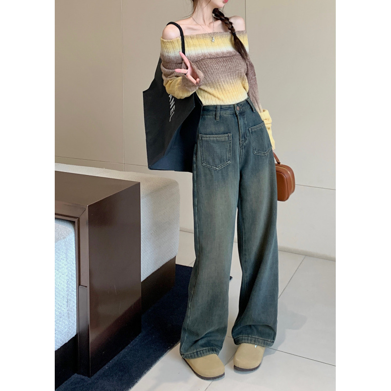 复古水洗蓝色牛仔裤女显瘦宽松直筒百搭长裤女