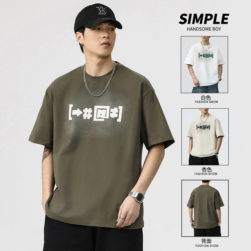 新款重磅潮牌休闲舒适男装宽松时尚百搭T恤简约薄款透气上衣