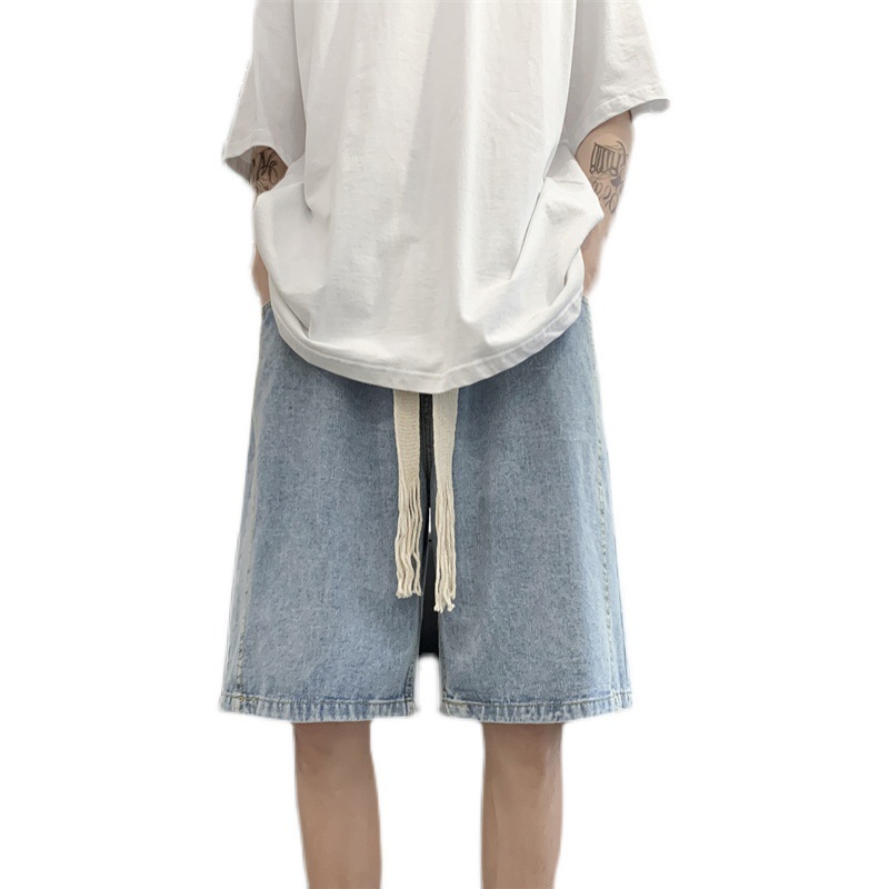 夏季牛仔短裤男韩版潮牌ins阔腿五分裤港风潮流百搭宽松休闲中裤