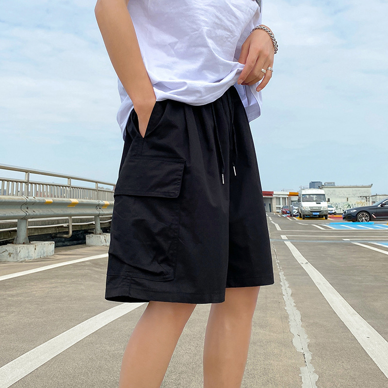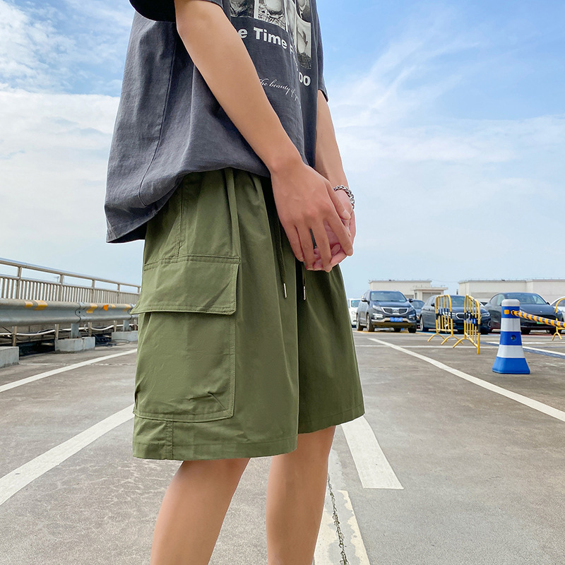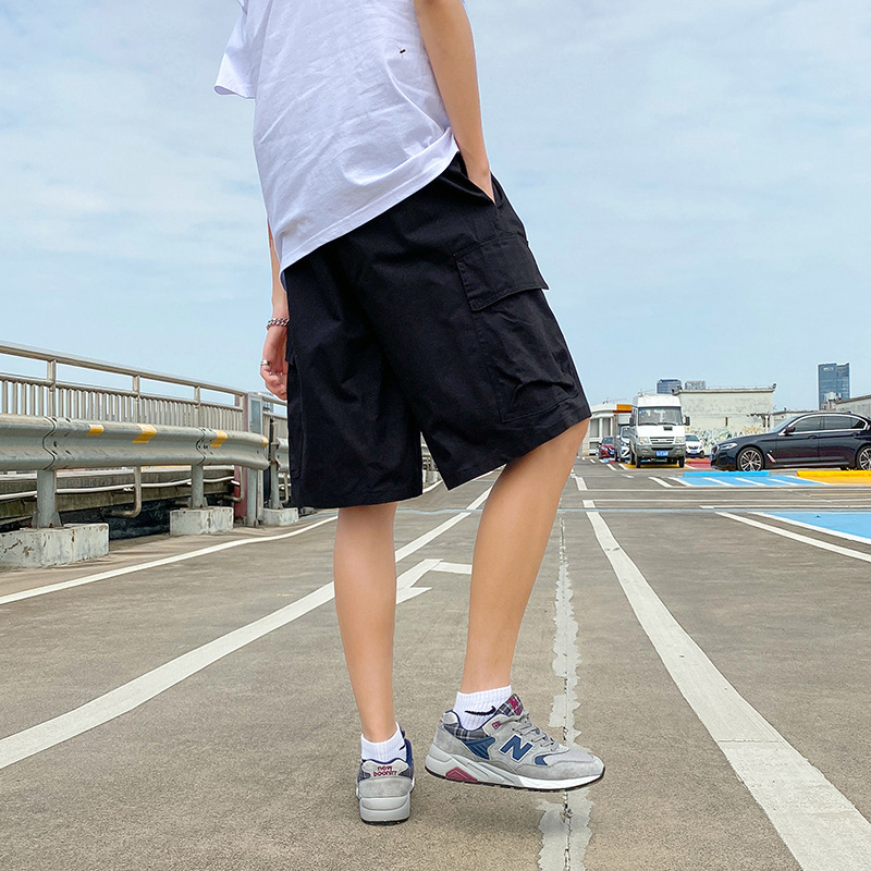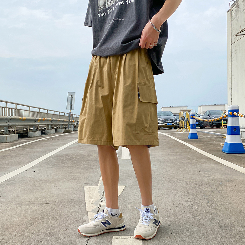 日系复古多口袋工装短裤男原宿港风休闲直筒宽松运动阔腿五分裤子