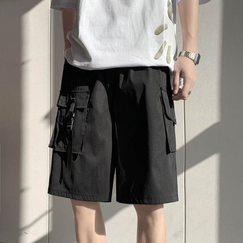 港风嘻哈工装短裤男潮牌ins夏季五分裤子韩版个性大口袋直筒中裤