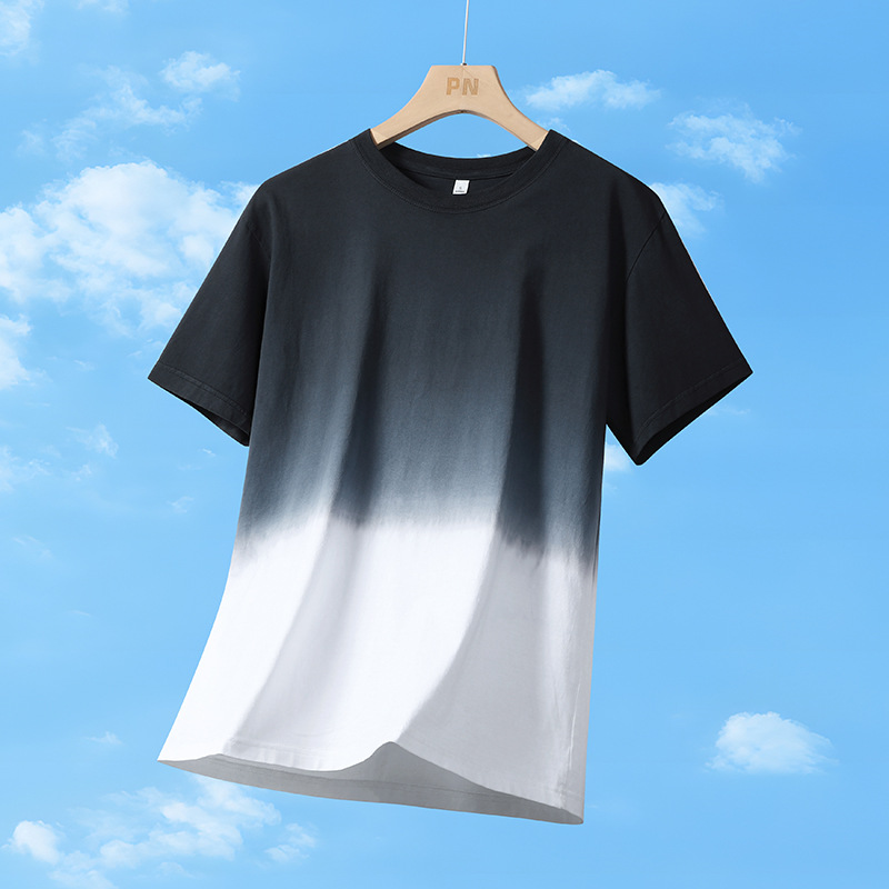 T恤男夏季渐变色短袖港风宽松潮牌学生青年男女情侣五分袖半袖t恤