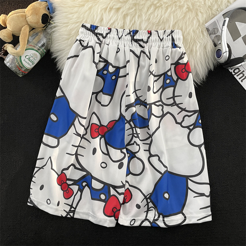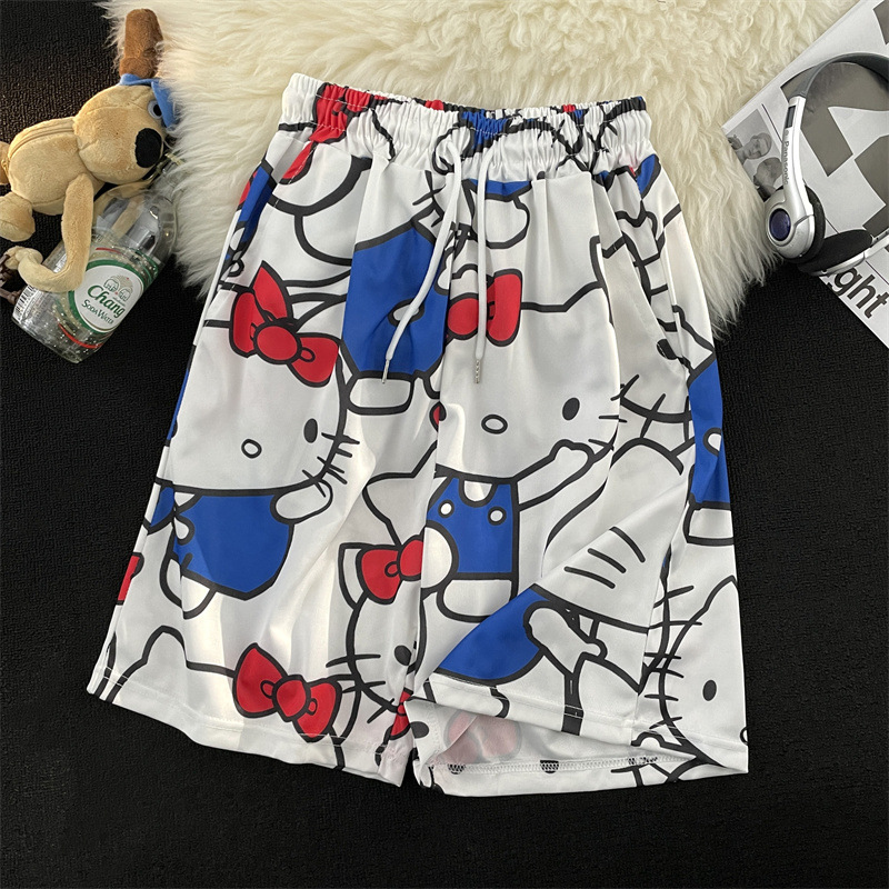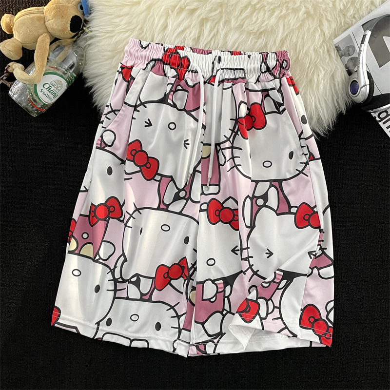 hellokitty裤子凯蒂猫夏季宽松沙滩裤男百搭潮流情侣休闲五分短裤
