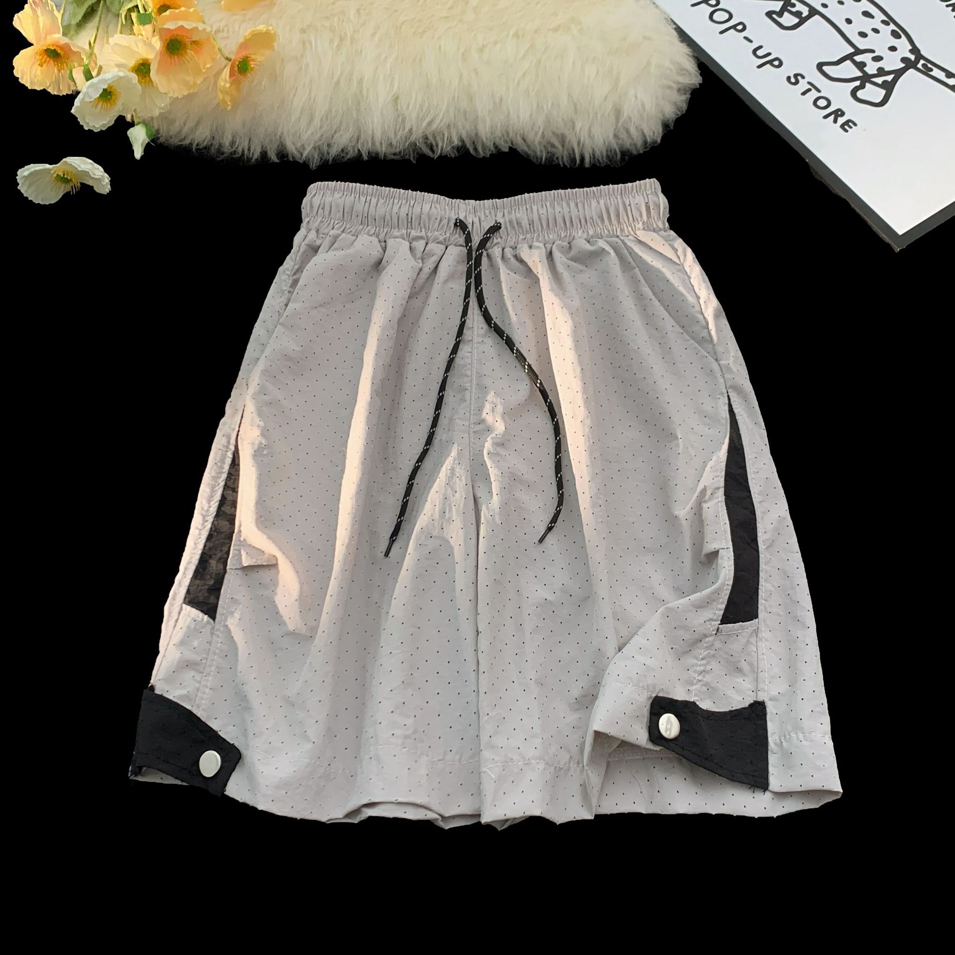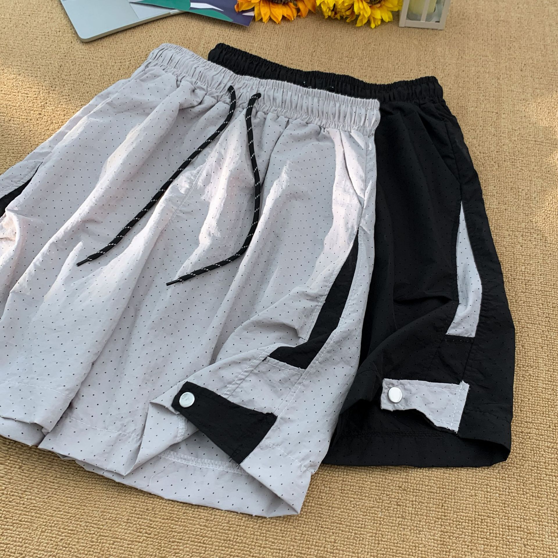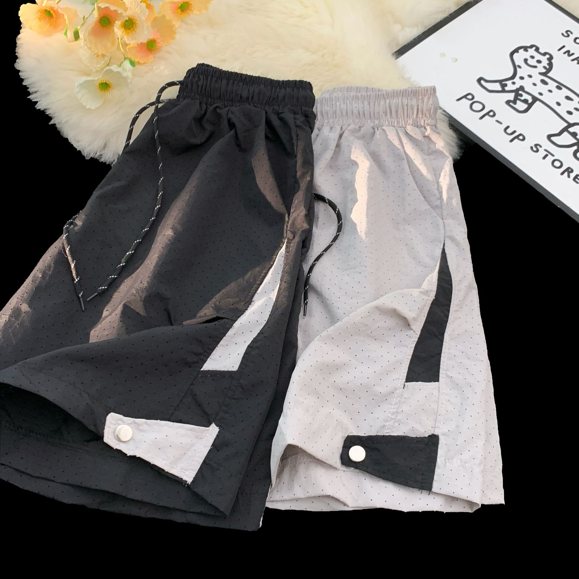 透气网眼速干运动短裤男生夏季薄款拼色冰丝皱户外沙滩休闲五分裤