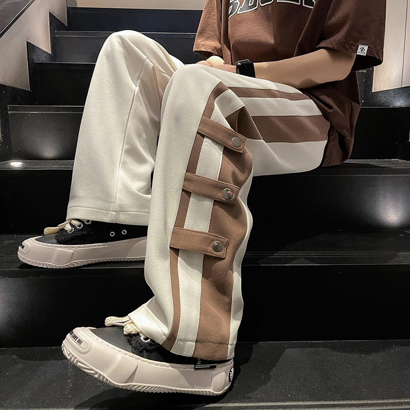 秋季港风潮牌拼接撞色裤子男款直筒宽松vibe美式高街阔腿休闲卫裤