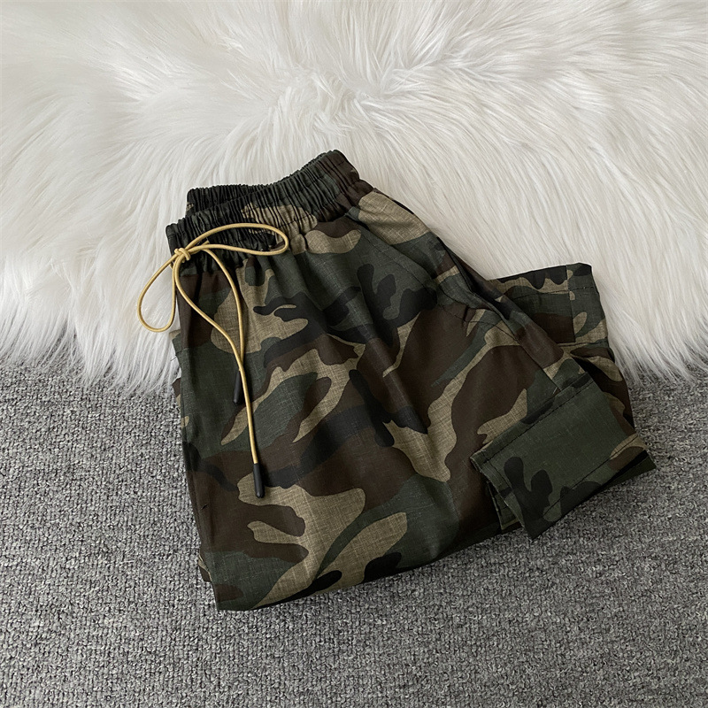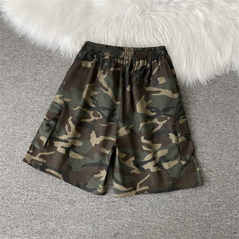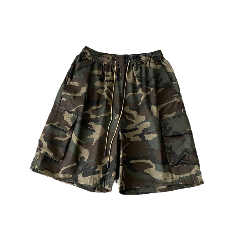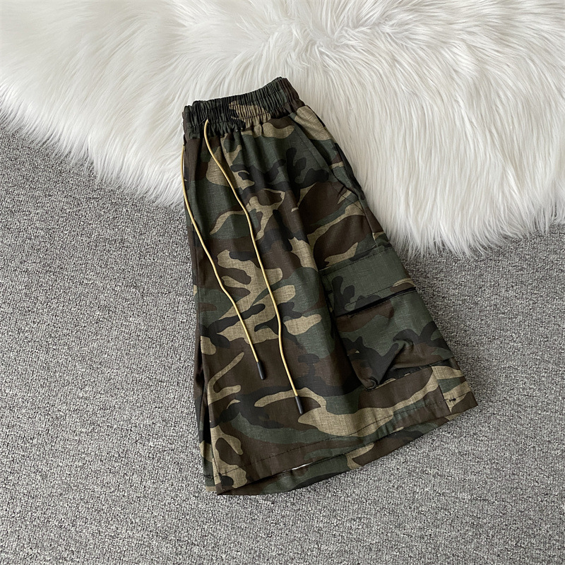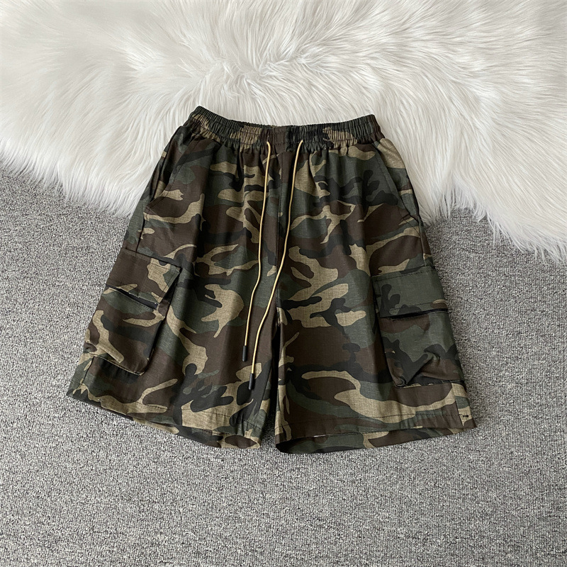 美式复古多口袋迷彩工装裤男夏季高街嘻哈休闲宽松直筒阔腿五分裤