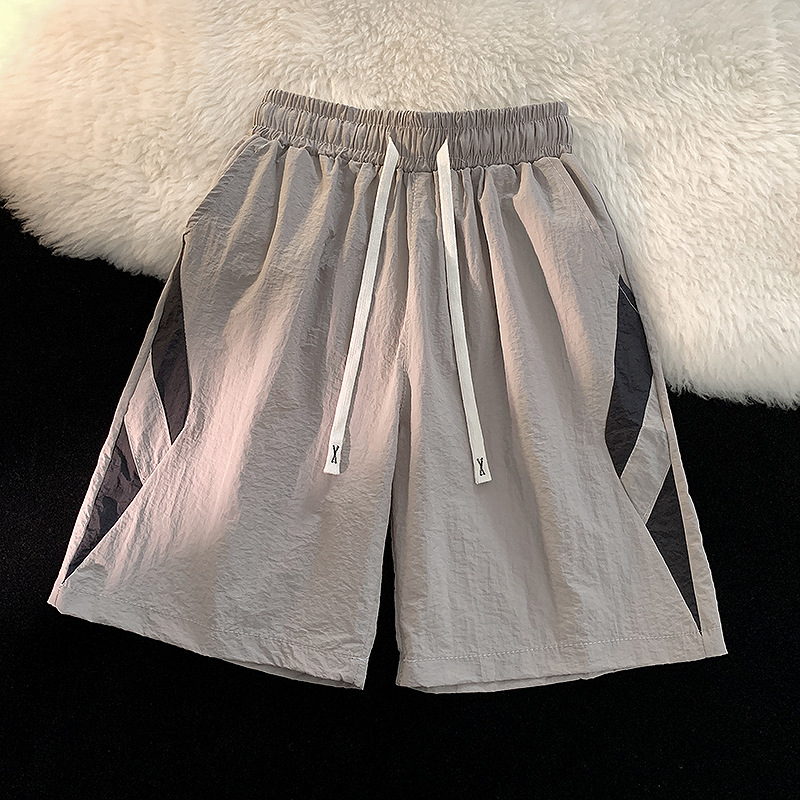 户外运动拼色速干休闲短裤男夏季薄款抽绳宽松显瘦阔腿直筒五分裤