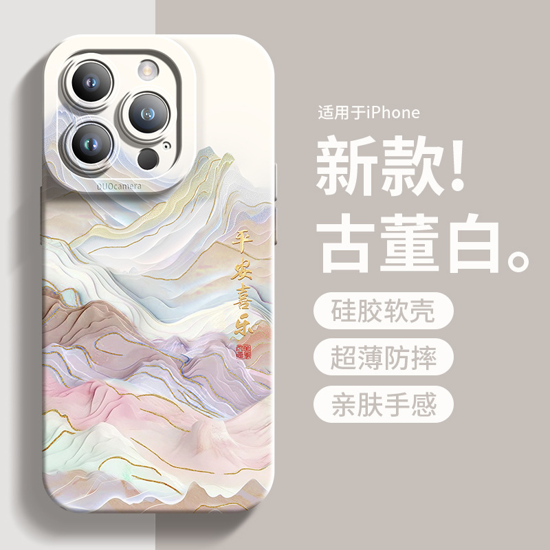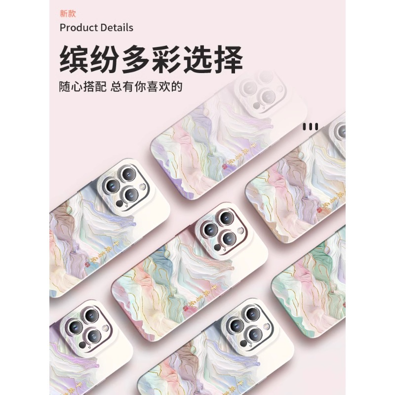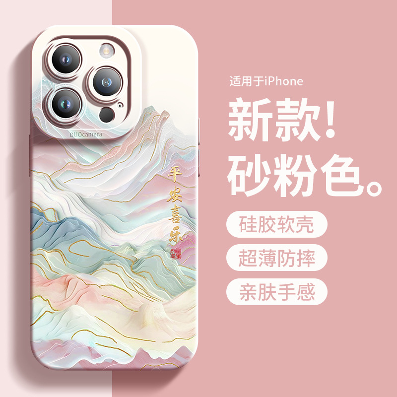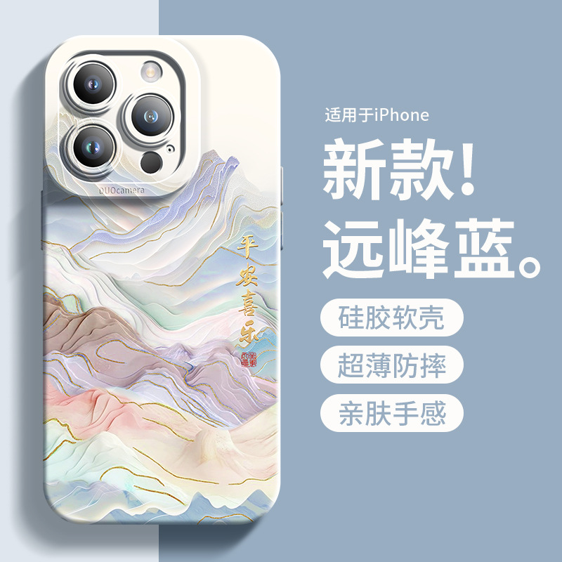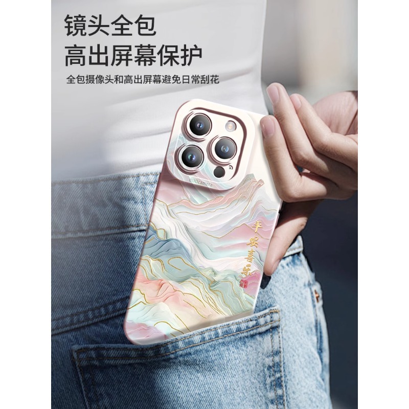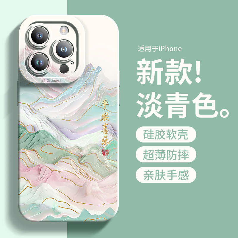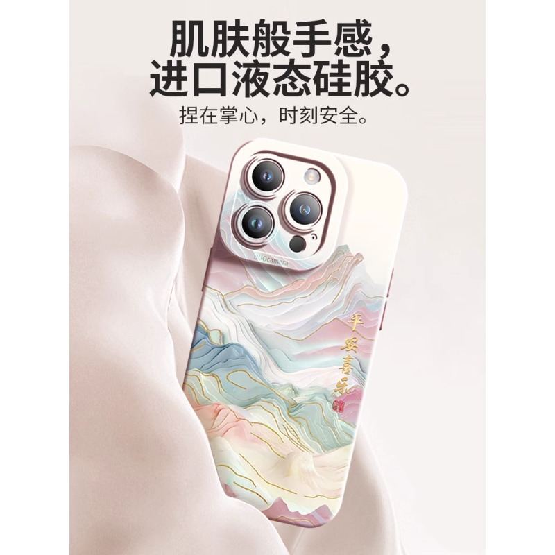 适用于苹果15手机壳山水日系全包12液态硅胶轻薄13保护壳14夏季