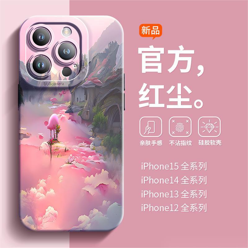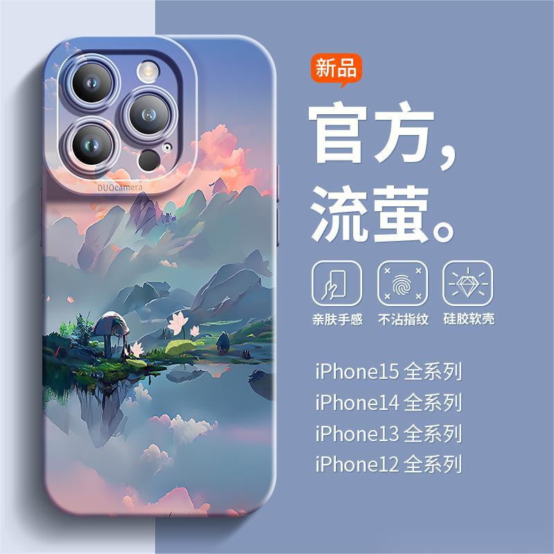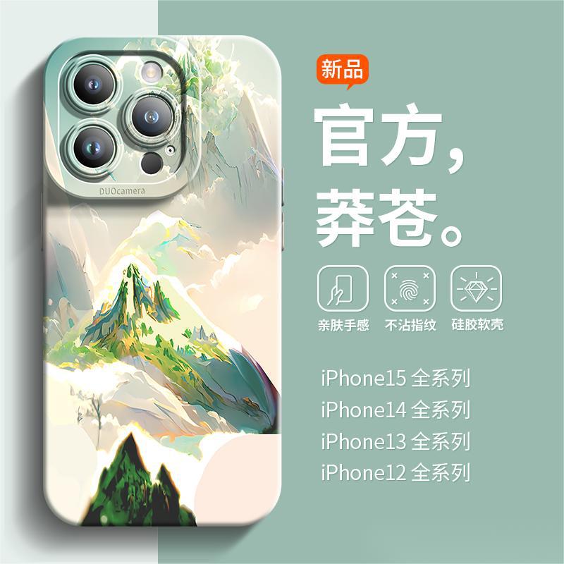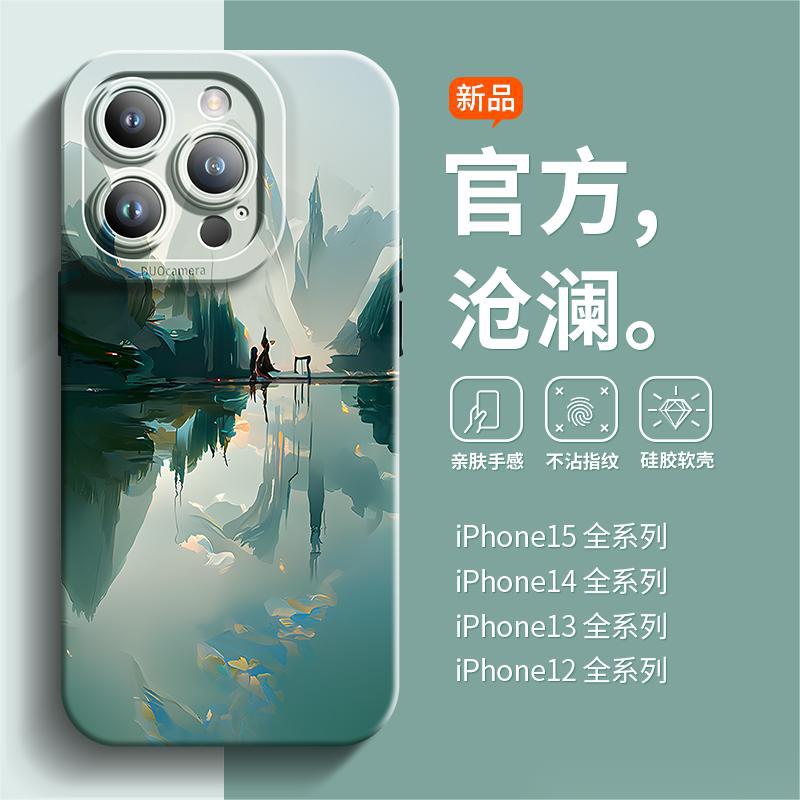 适用于苹果15Pro手机壳沧澜硅胶现代全包唯美14保护壳高颜值亲肤