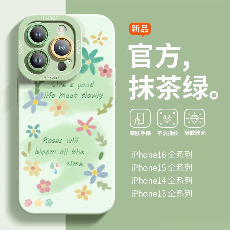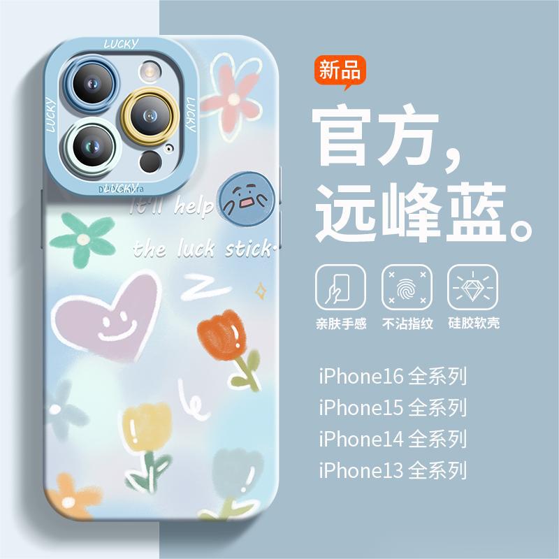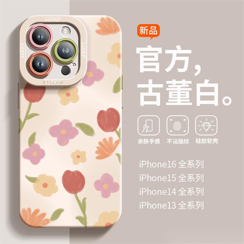 适用于苹果13Pro手机壳高级感复古涂鸦全包iPhone15爆款液态硅胶1