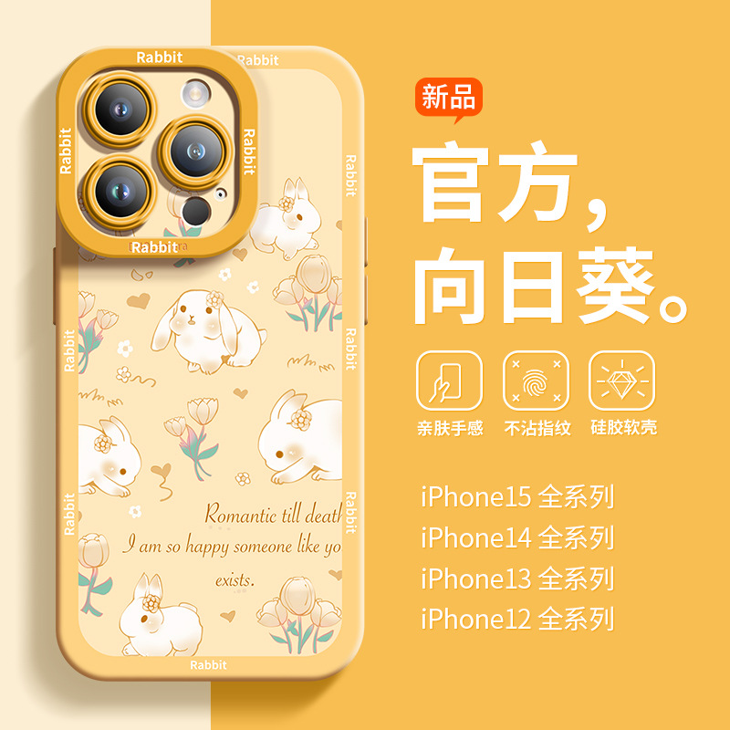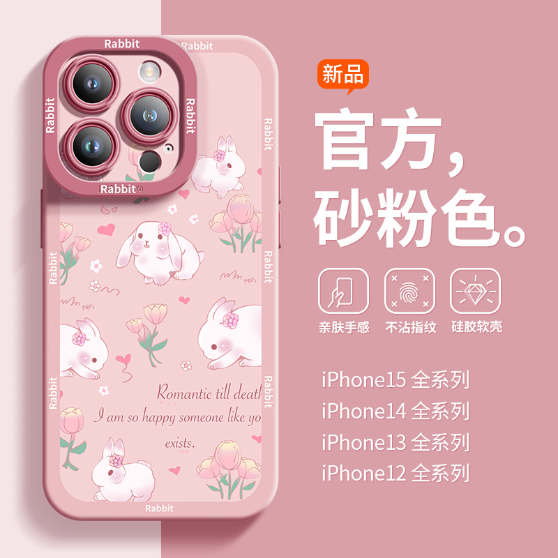 卡通羽纱英文狗狗适用15ProMax手机壳苹果14电镀镜框13pro防摔女