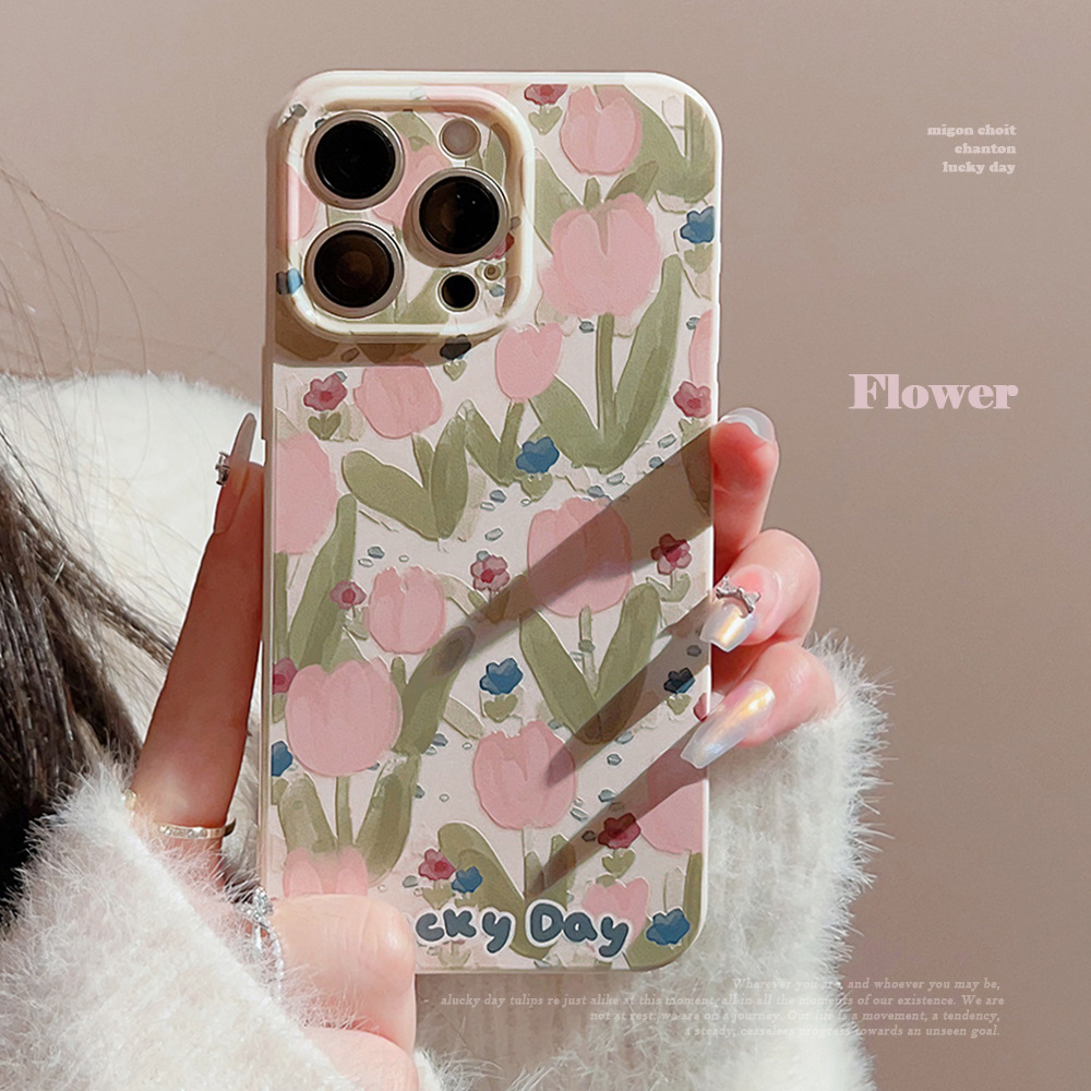 适用ins春日油画花朵iPhone14pro max苹果15手机壳16硅胶11全包13