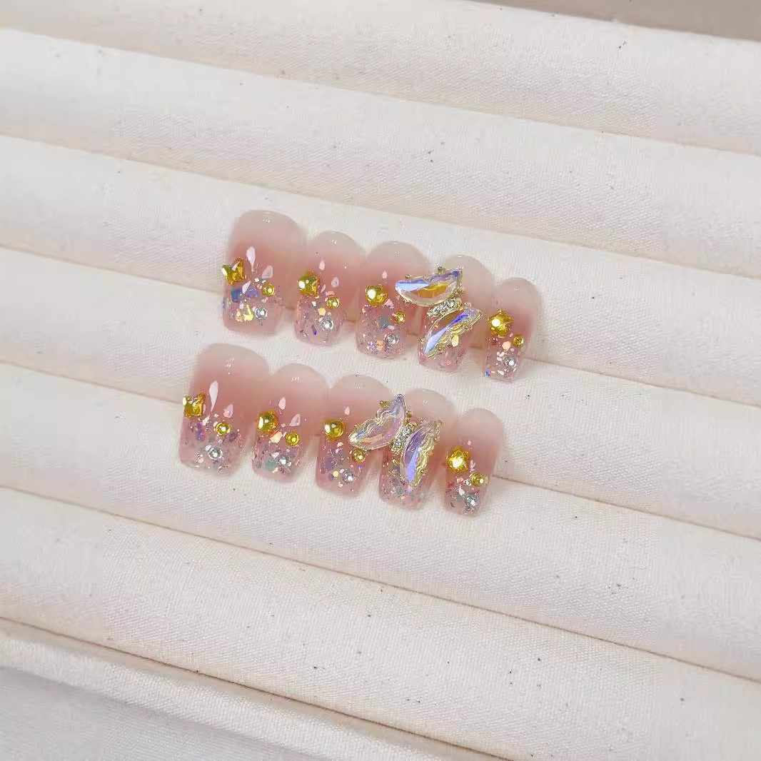 可旋转蝴蝶精品纯手工穿戴甲高级爆闪美甲贴片成品假指甲