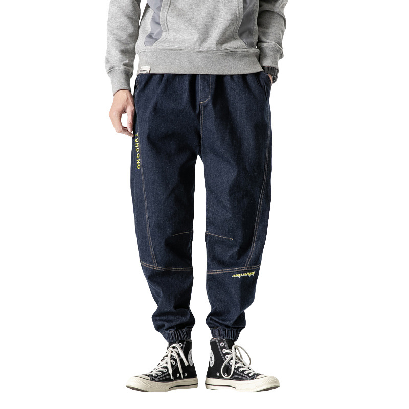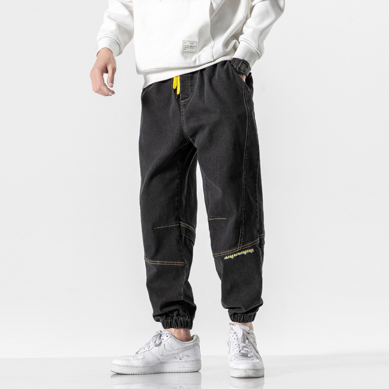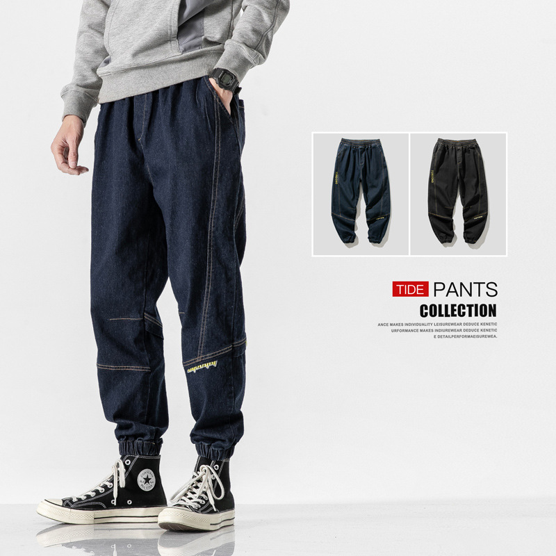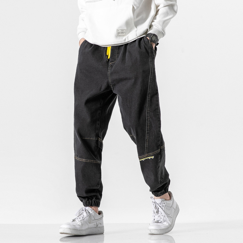秋季哈伦牛仔裤男士阔腿宽松休闲加肥大码九分潮胖子潮牌束脚裤男