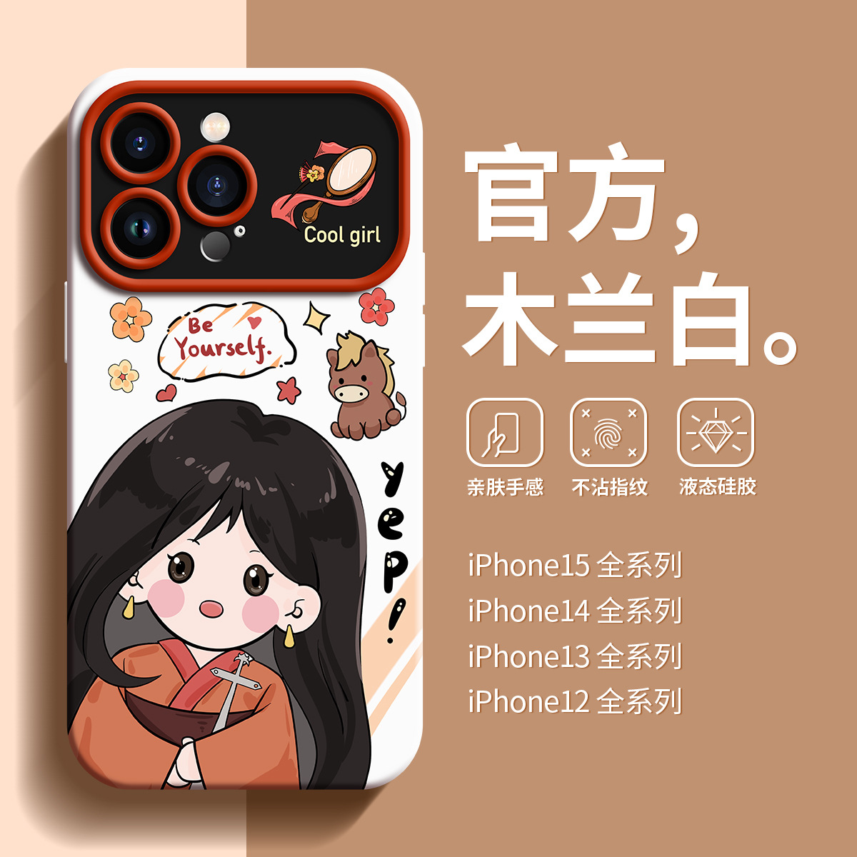 适用于新款苹果15手机壳14promax原创花木兰iphone13液态硅胶12pr