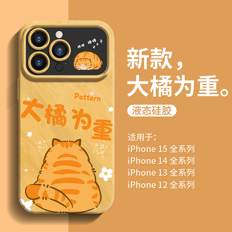 大橘为重适用苹果14手机壳新款iphone15Promax可爱液态硅胶13Pro
