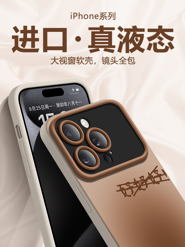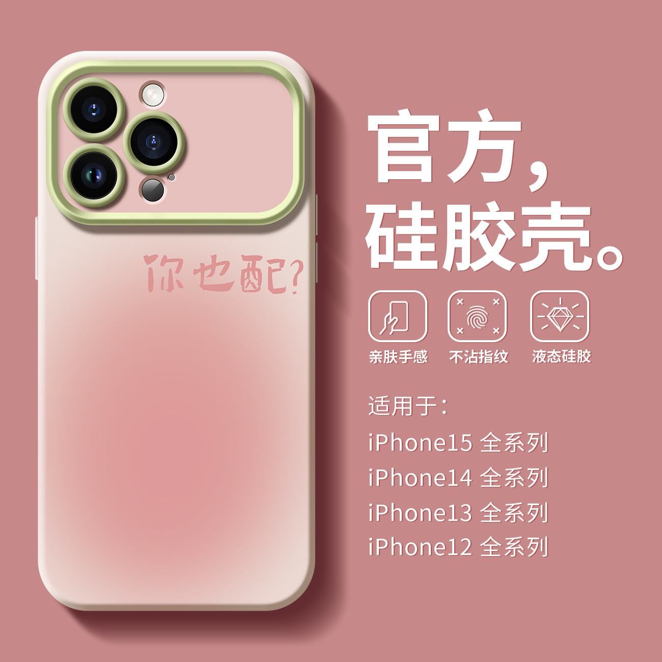 适用于苹果15手机壳新款大视窗iPhone14pro简约趣味文字13液态硅