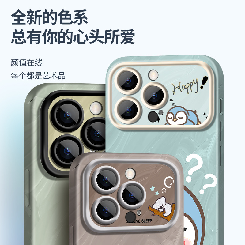 适用于苹果15pro手机壳可爱熊猫液态iPhone14promax网红简约13大
