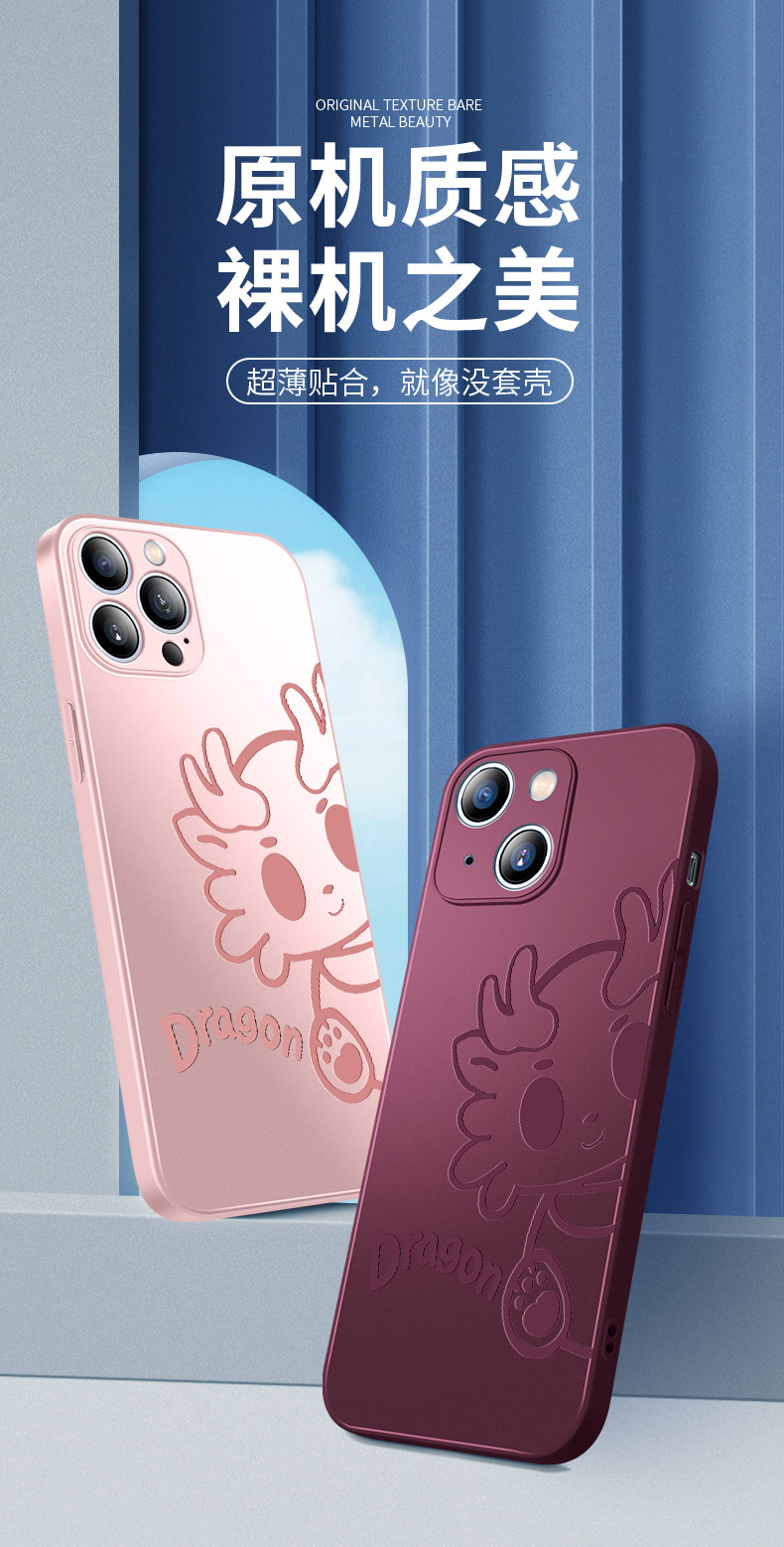 适用于苹果13手机壳新款iphone15Promax探头龙磨砂玻璃14全包