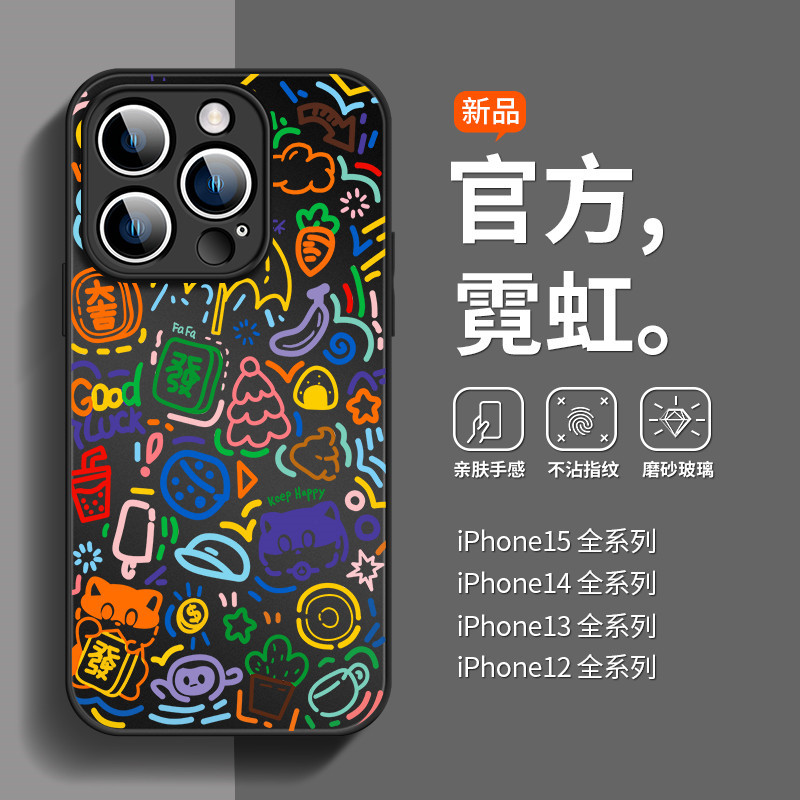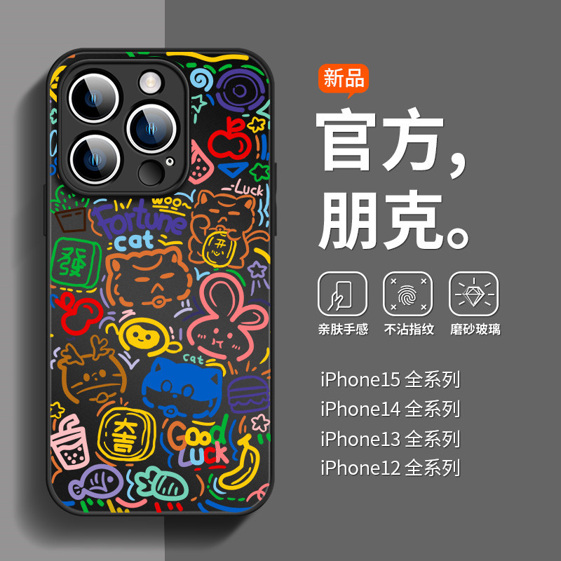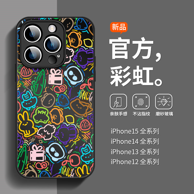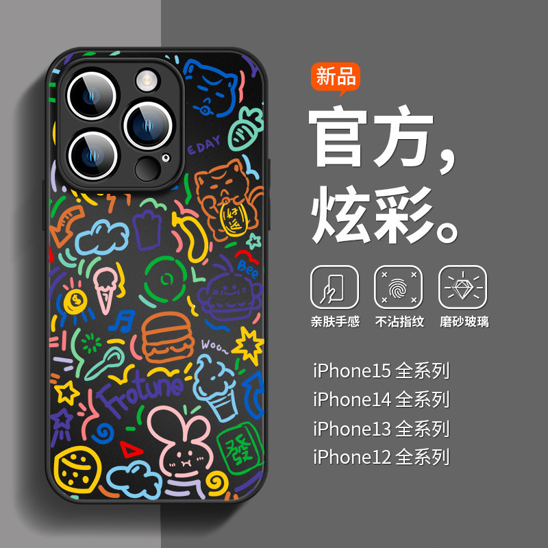 适用于苹果13手机壳涂鸦不撞壳全包iphone13磨砂玻璃高级感防摔14