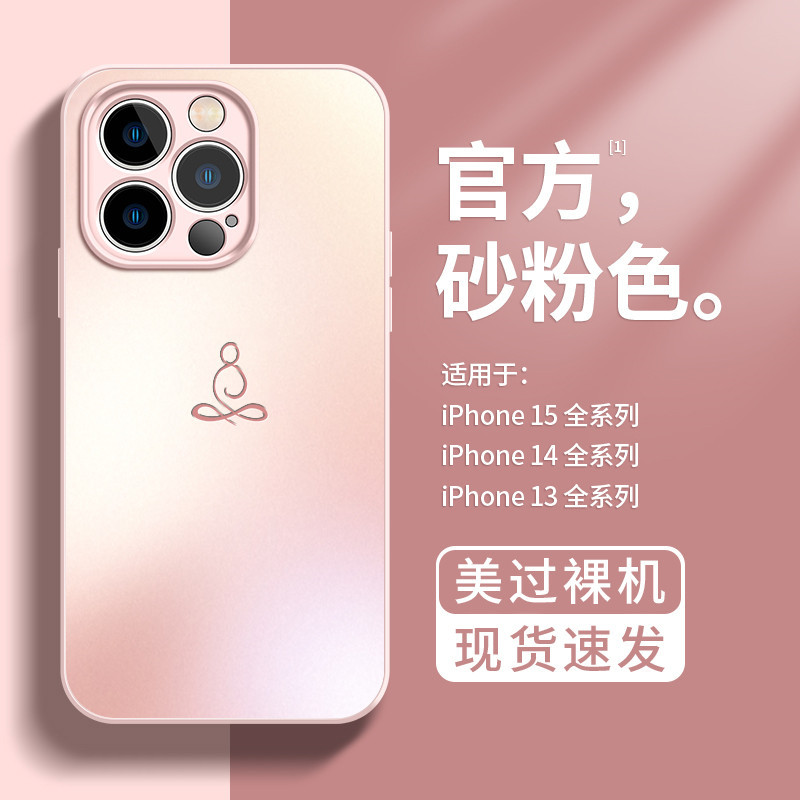 适用于苹果15手机壳打坐高级感爱心全包iphone13Pro磨砂玻璃不撞