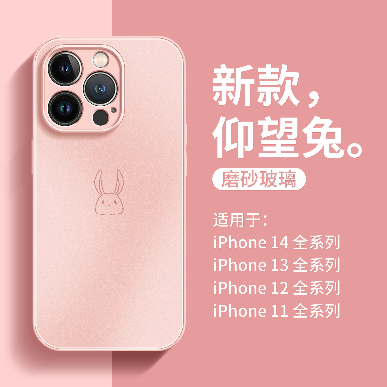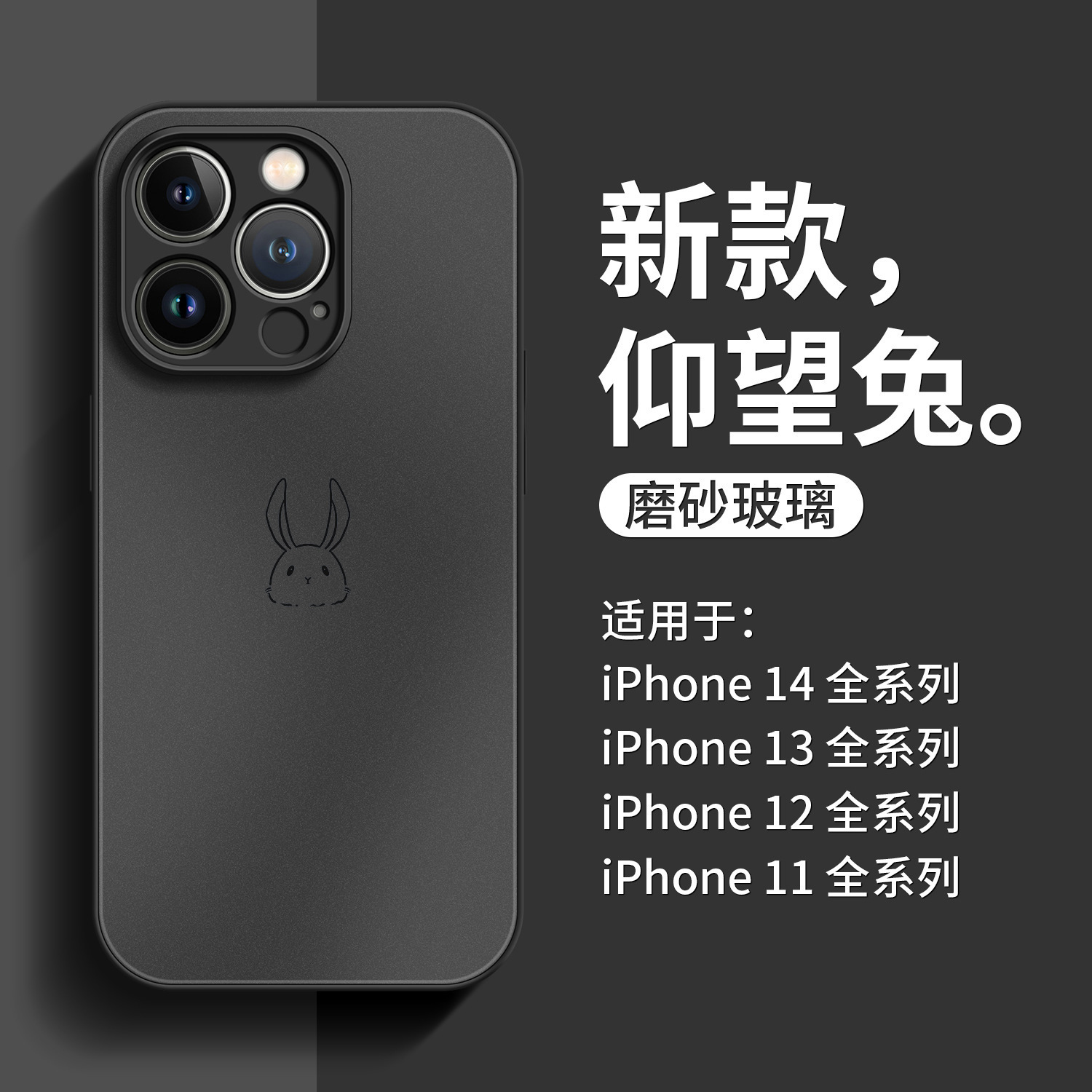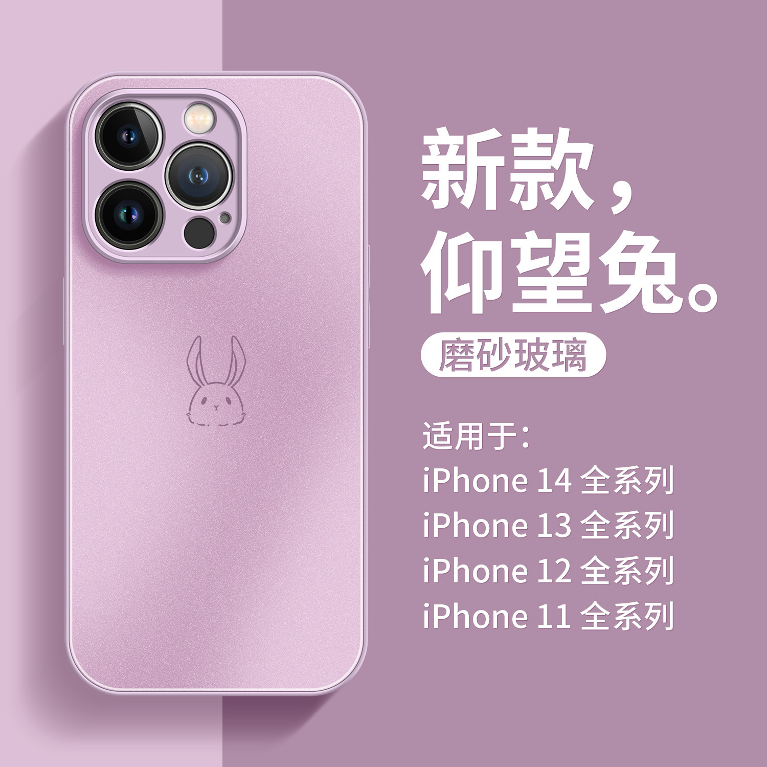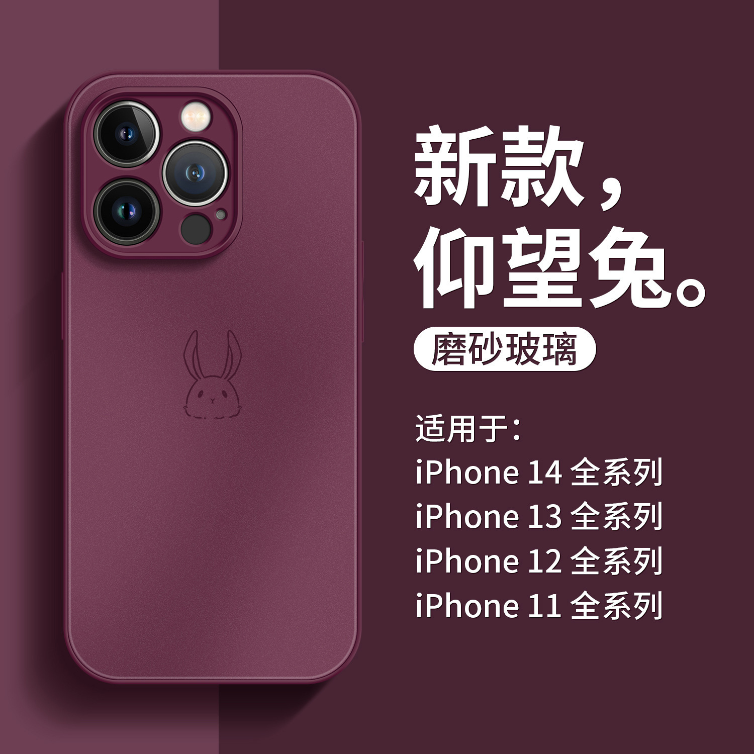 适用暗紫色苹果14手机壳超薄iphone14pro磨砂玻璃13promax兔年生