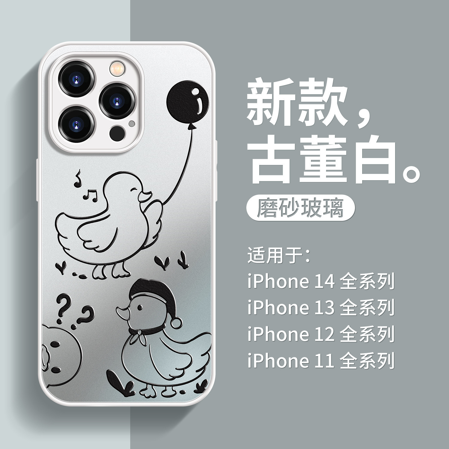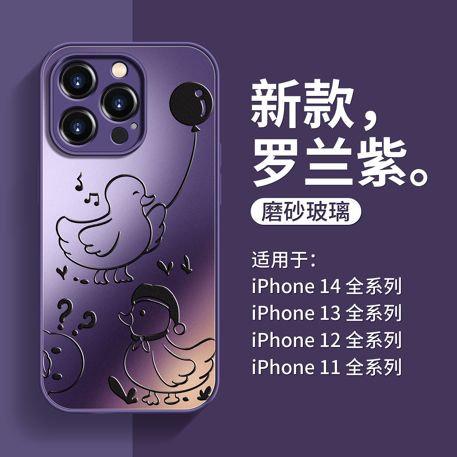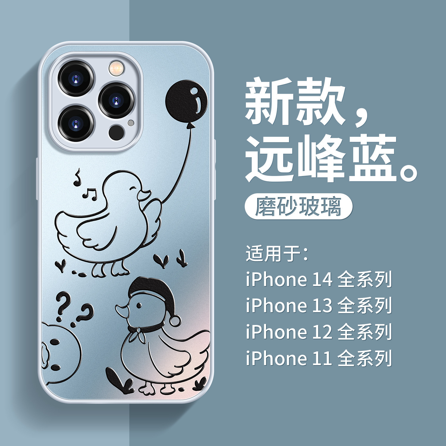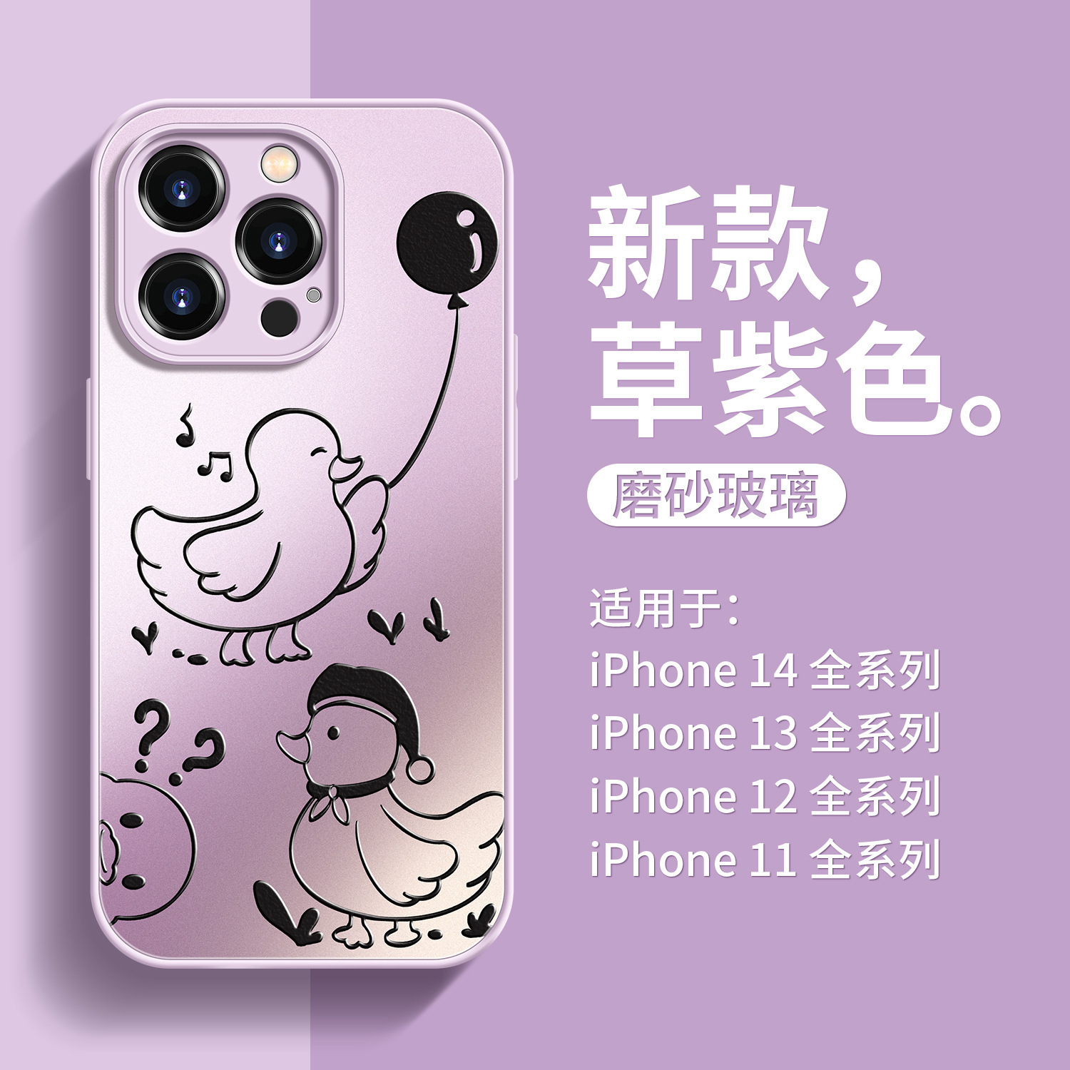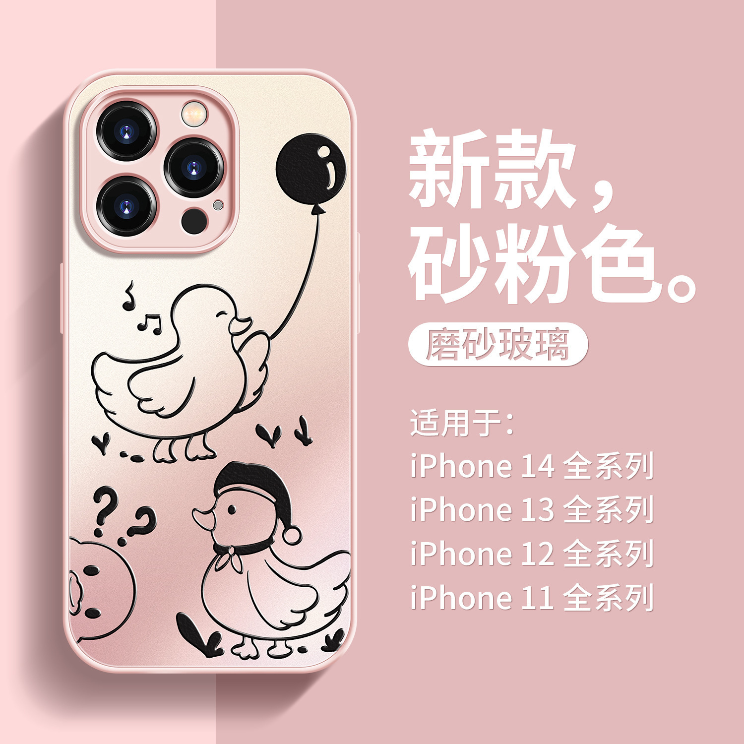卡通气球鸭适用于iPhone14promax手机壳磨砂手感x/xr超薄防摔苹果