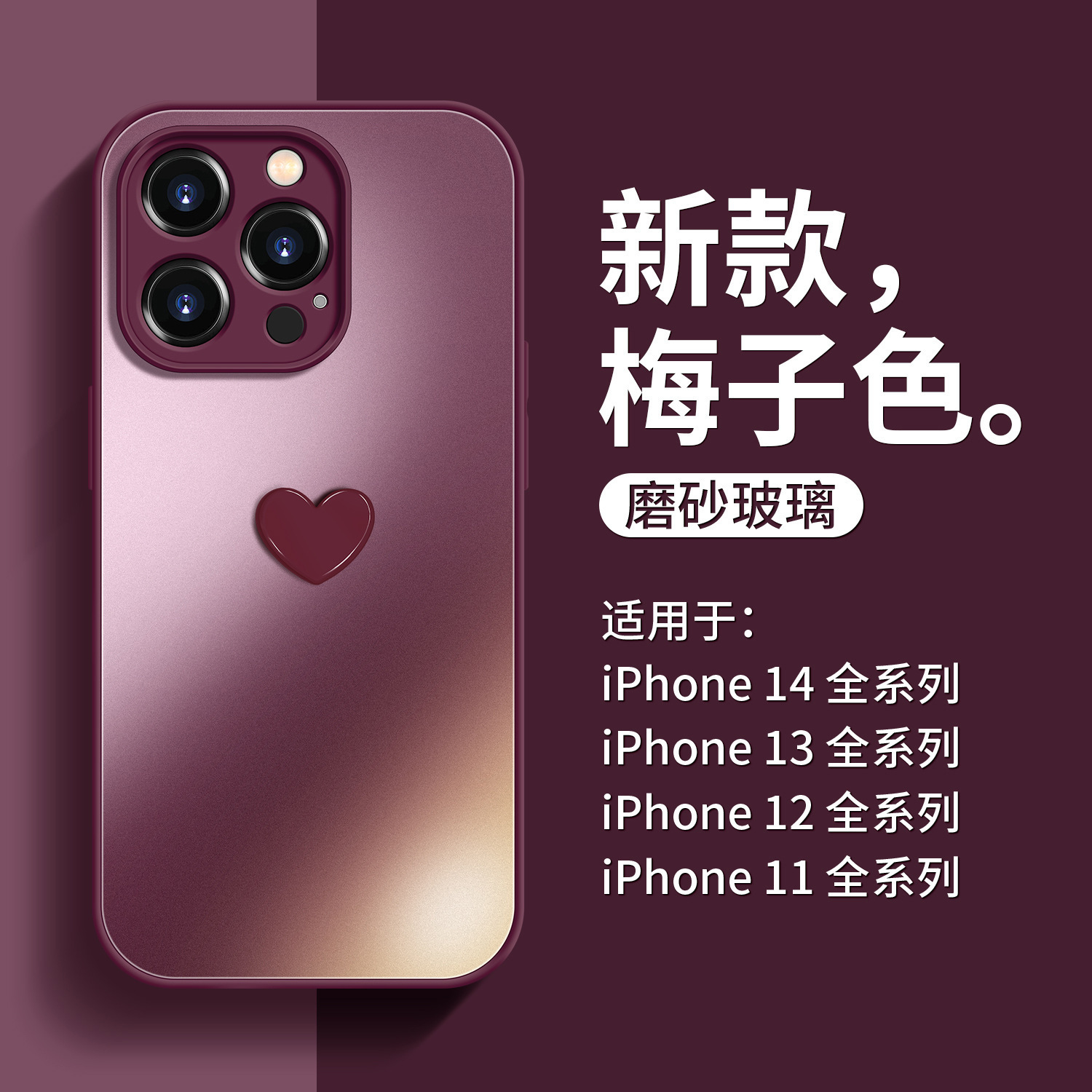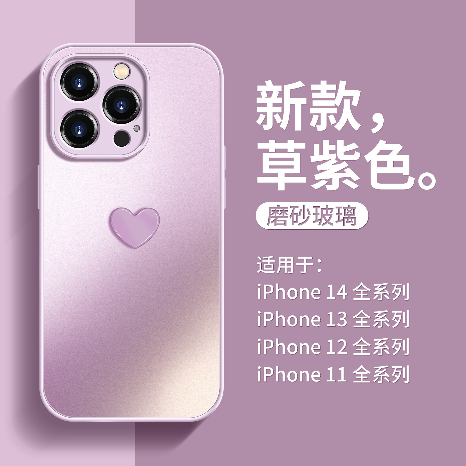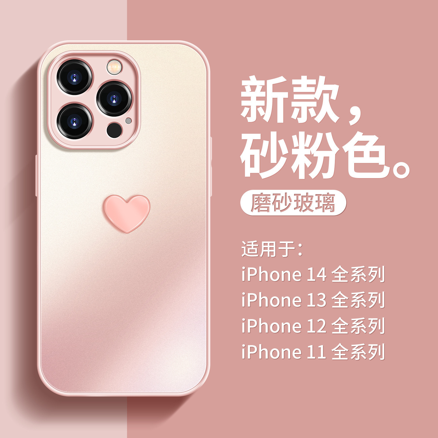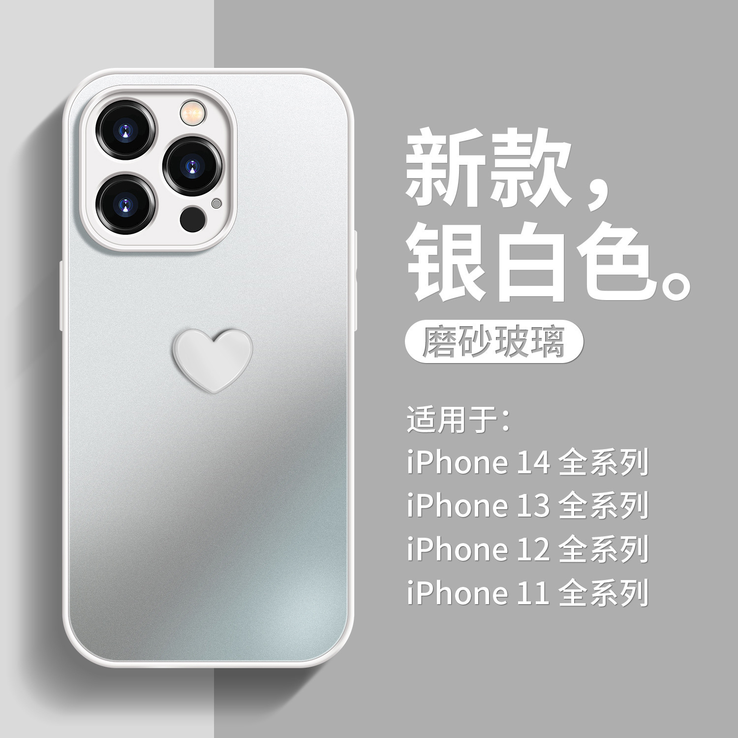 适用于苹果14Pro手机壳新款玻璃果冻爱心iPhone13简约潮牌12小清
