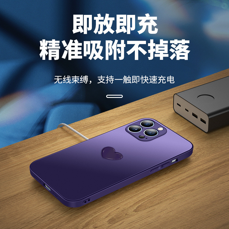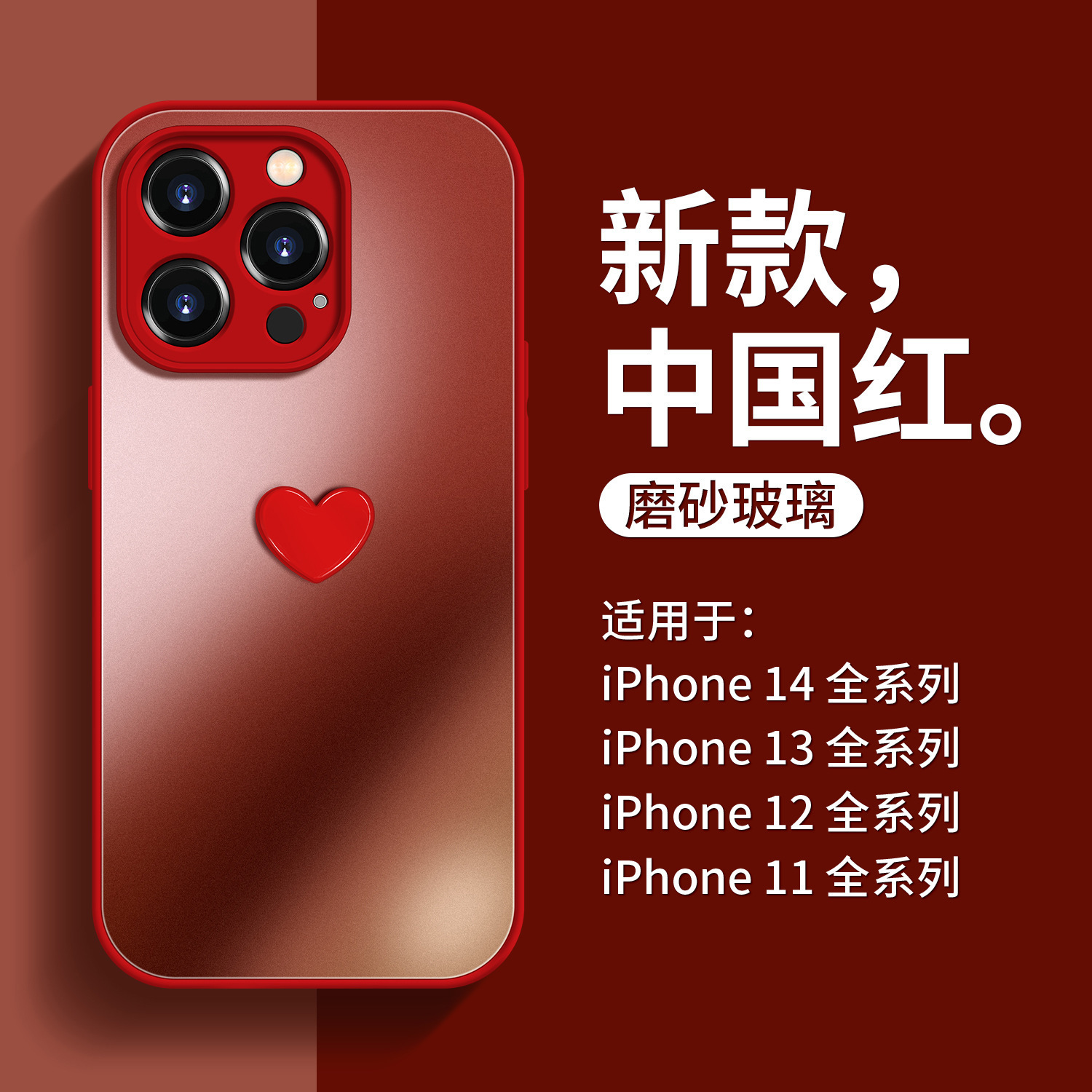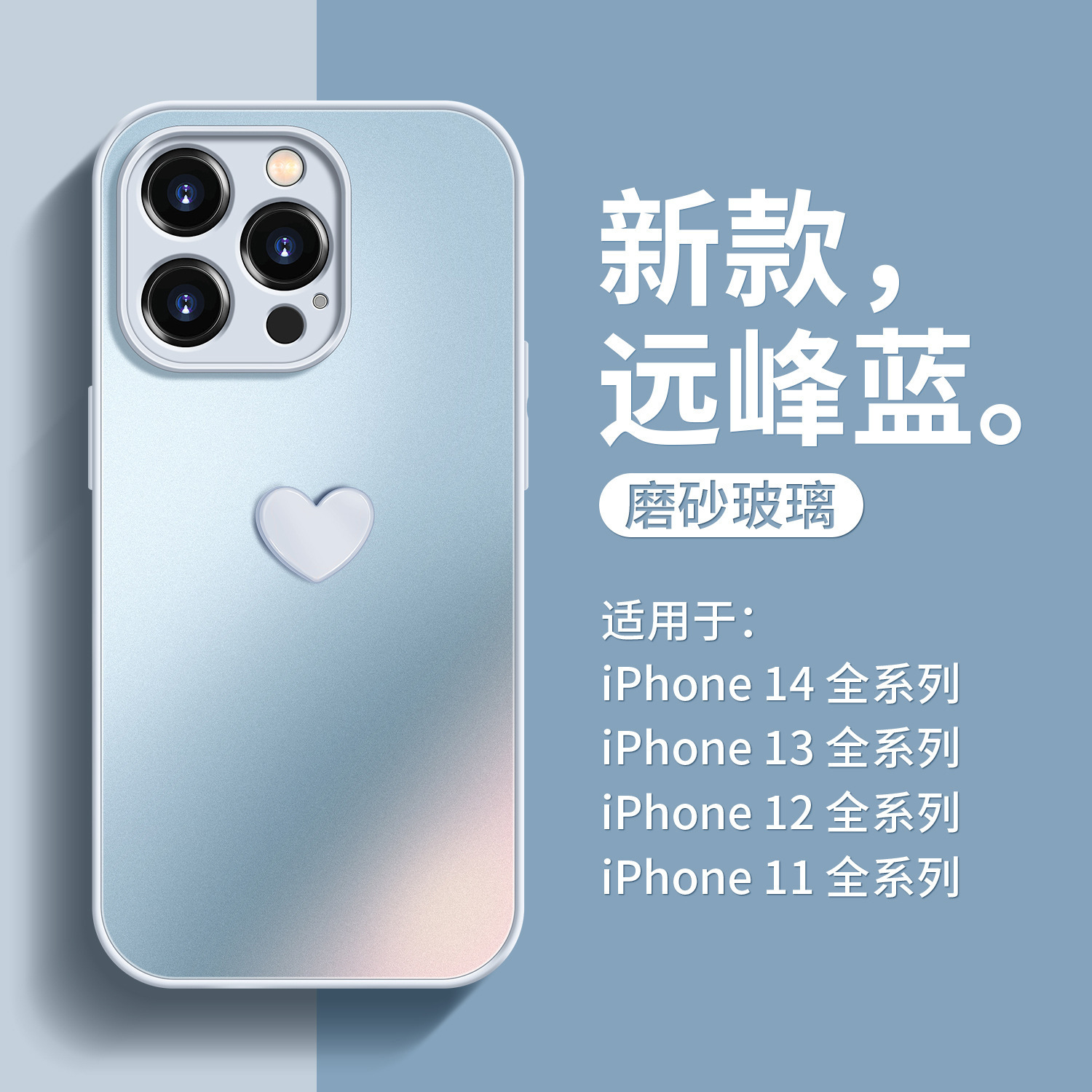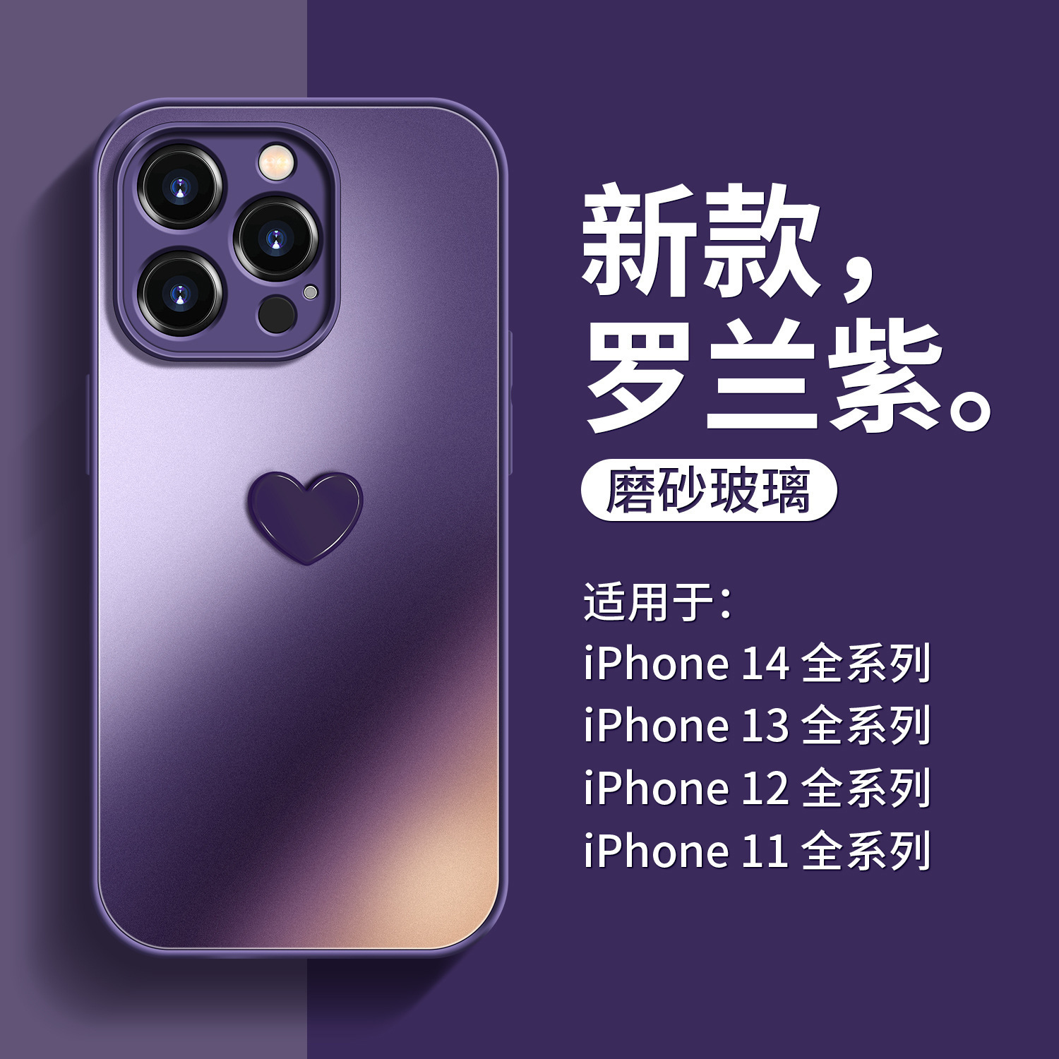 适用于苹果14Pro手机壳新款玻璃果冻爱心iPhone13简约潮牌12小清