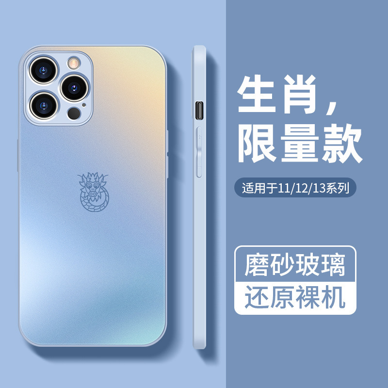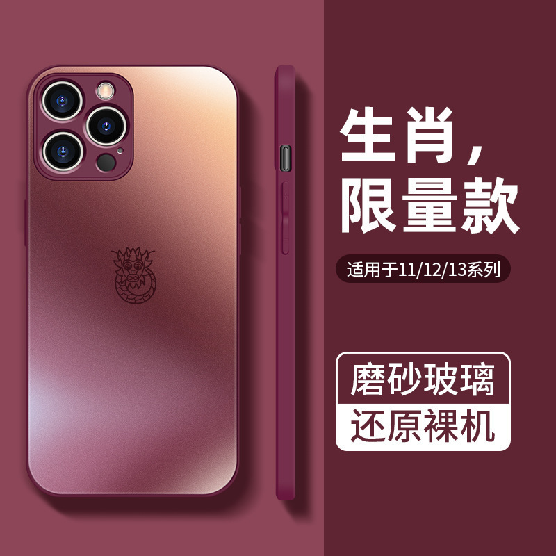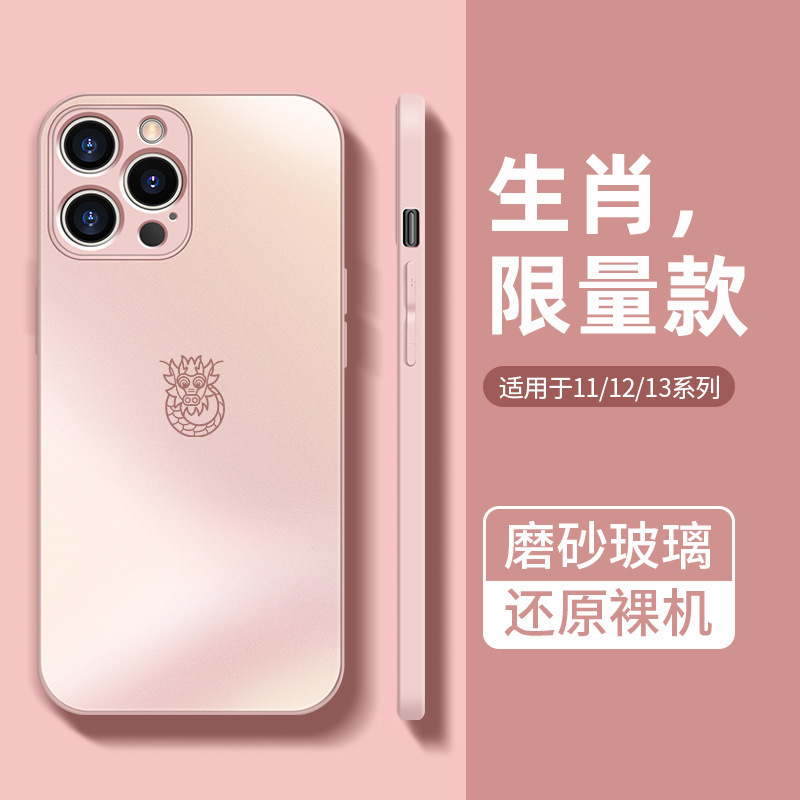 新款龙适用于苹果14手机壳15磨砂玻璃简约防摔iphone13全包潮牌